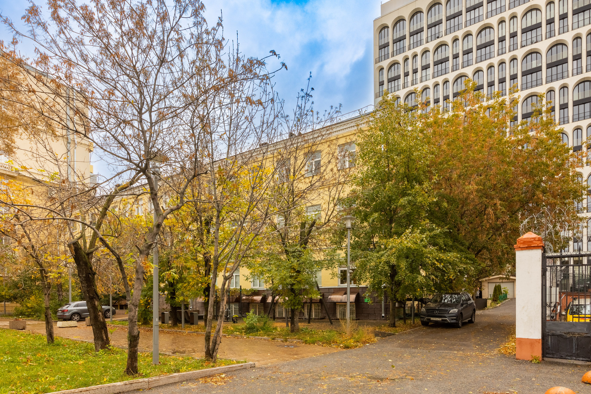 Во дворе под шлагбаумом парковка для жителей дома. Это бесцено для ЦАО.