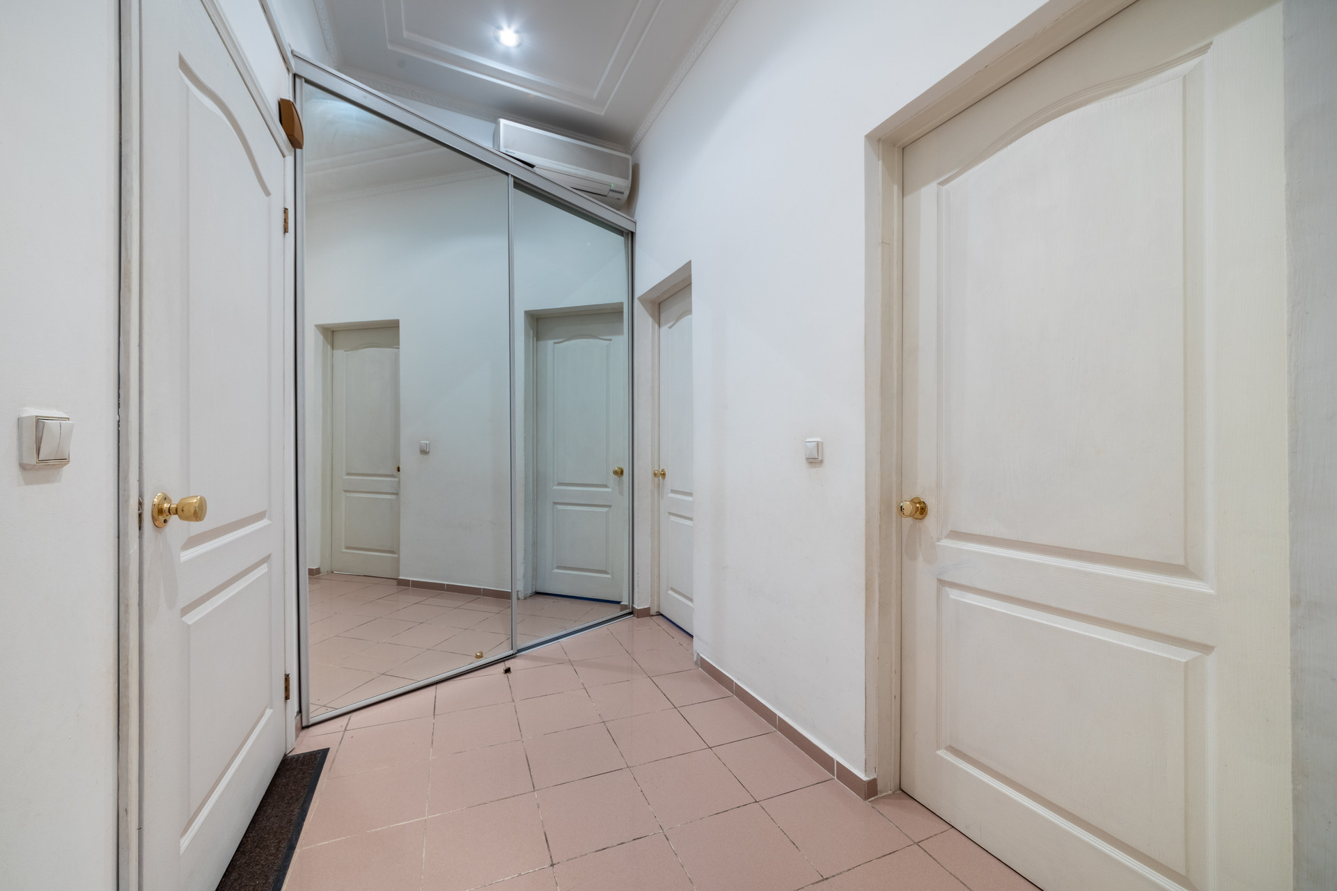 Прихожая площадью (7,7 кв м) имеет современный встроенный шкаф.