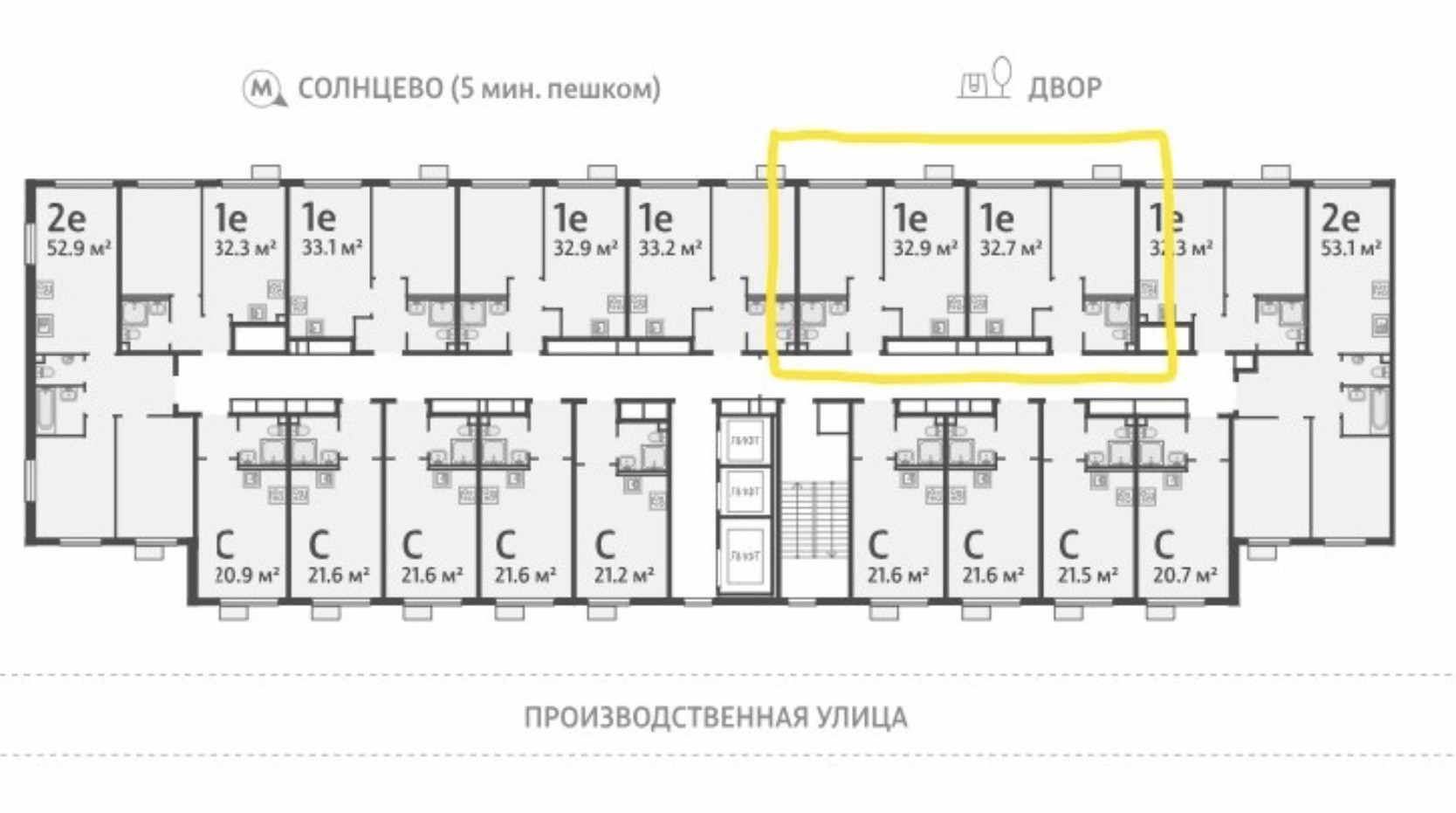Общая площадь 32.9 м2