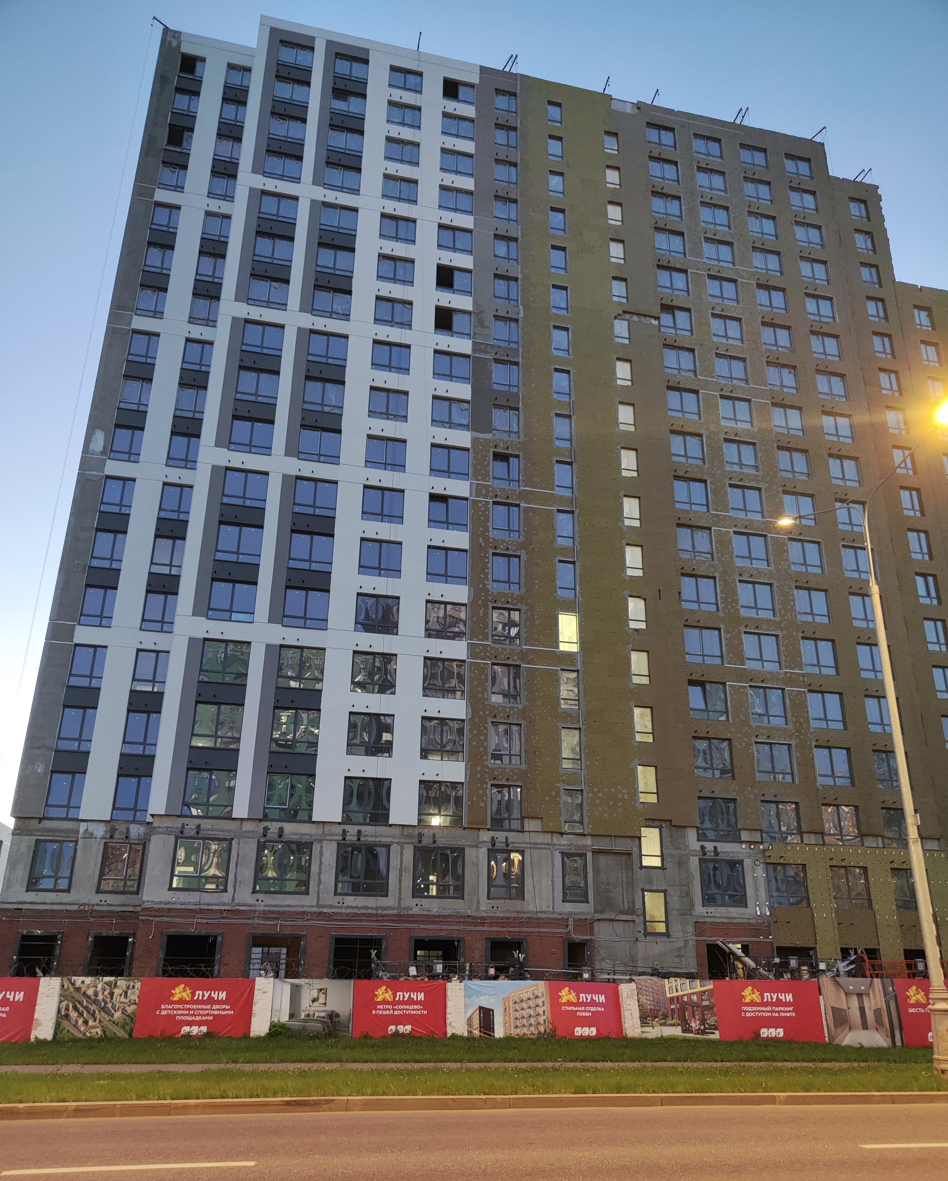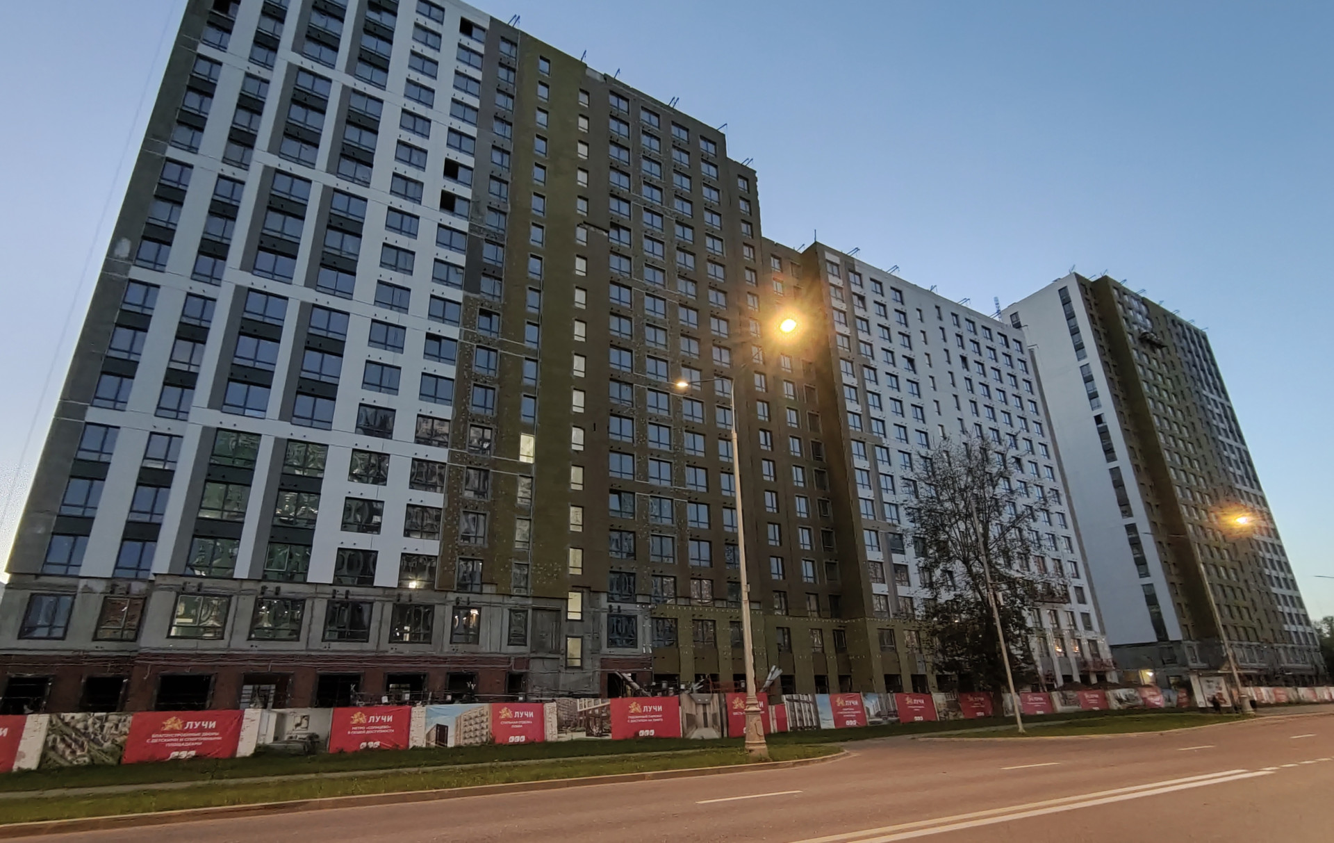Часть внутренней территории комплекса засеяна газоном, дворы сделаны максимально свободными от автотранспорта, высаживаются деревья и кустарники. По центру жилого комплекса "Лучи" пройдет живописный зеленый бульвар - центральная улица всего микрорайона.