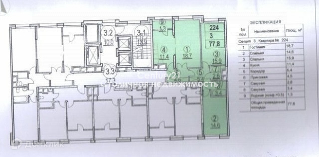 3-комнатная квартира, 80 м2, этаж 17 / 22, на продажу в Москве, Родниковая улица, 30к2