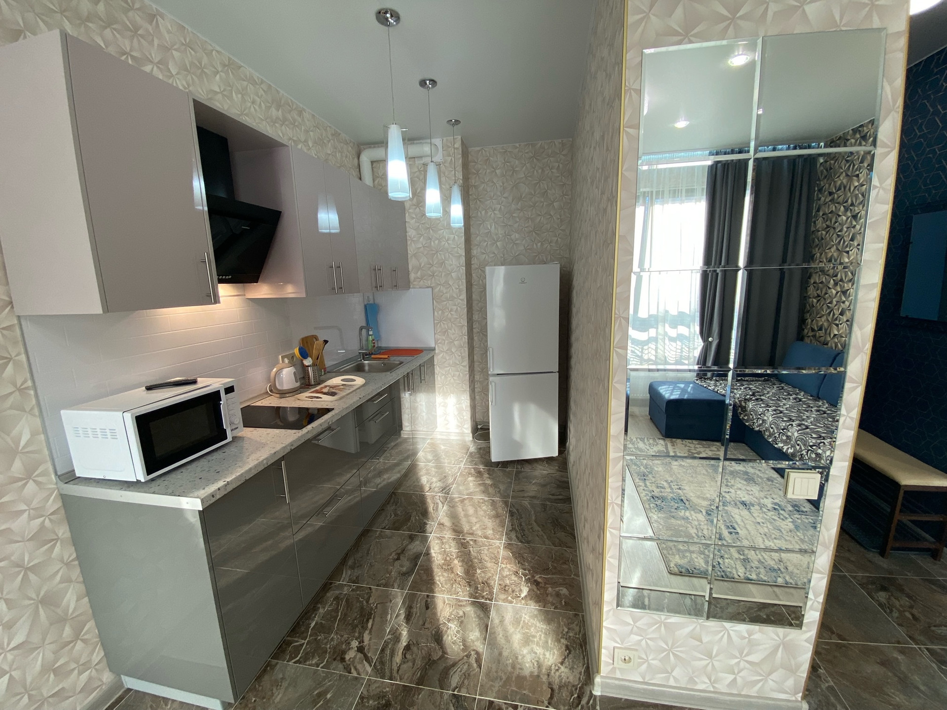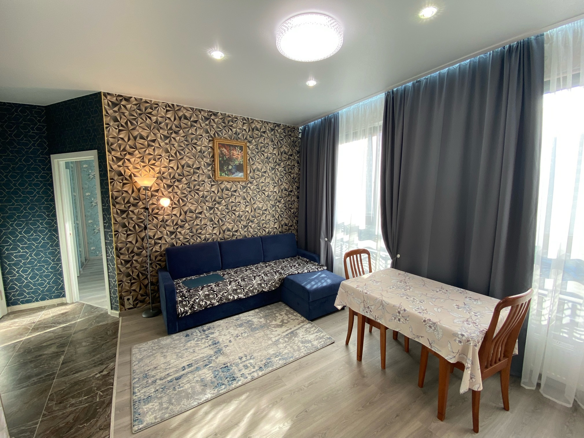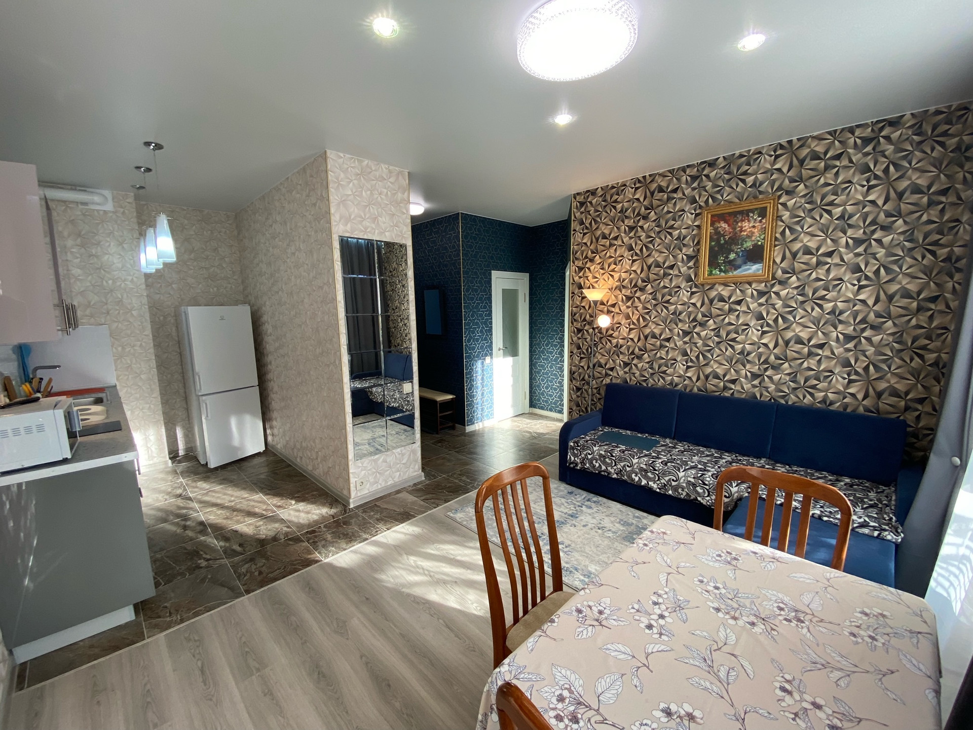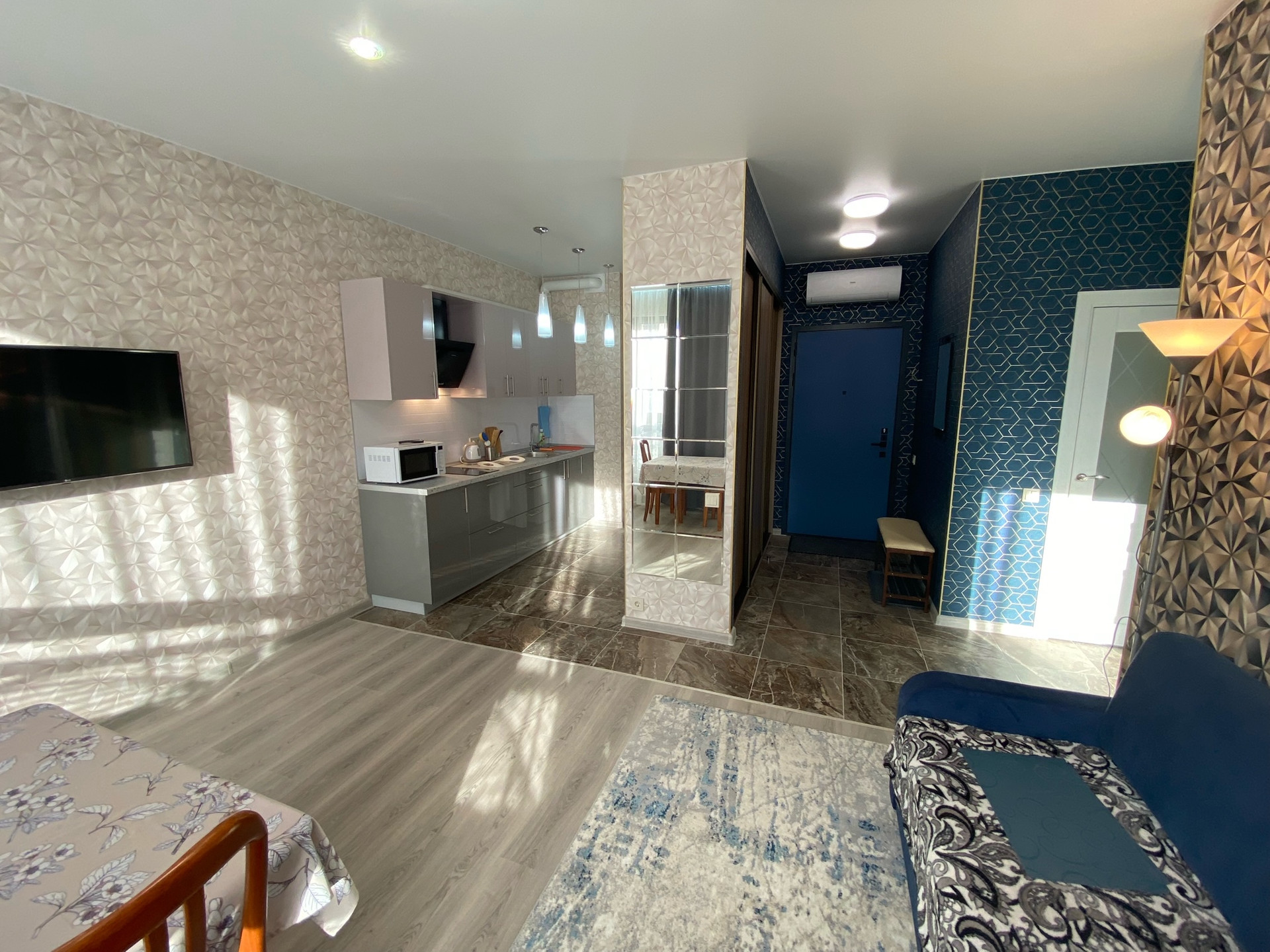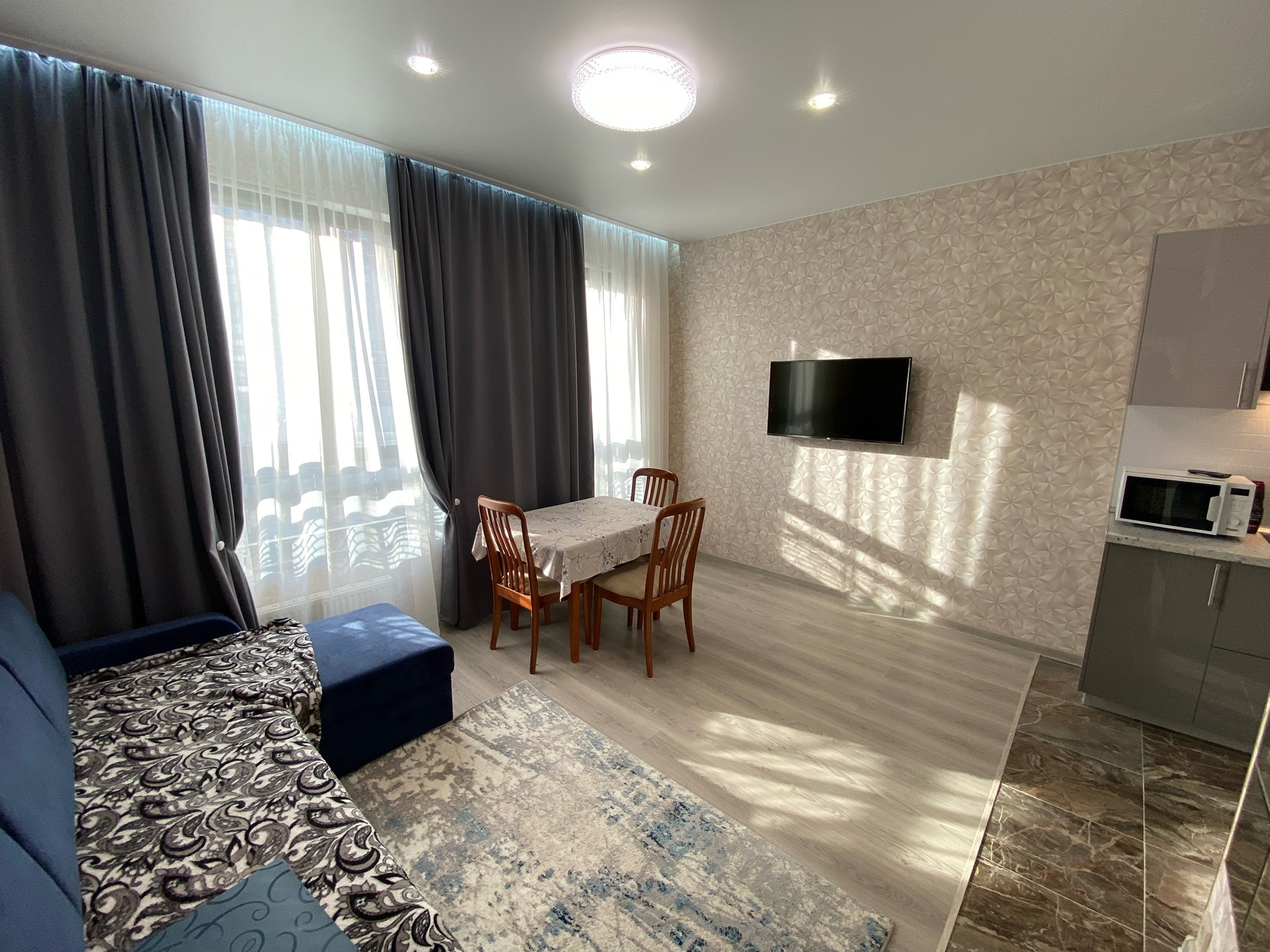 ЖК "Селигер сити", малоэтажный корпус "Брюллов". Планировка квартиры - евродвушка. В квартире выполнен качественный ремонт с использованием импортных отделочных материалов. Квартира полностью мебелированная, кондиционер. Кухня-гостиная 20 кв.м., спальня 12 кв.м., окна выходят во внутренний двор ЖК.
