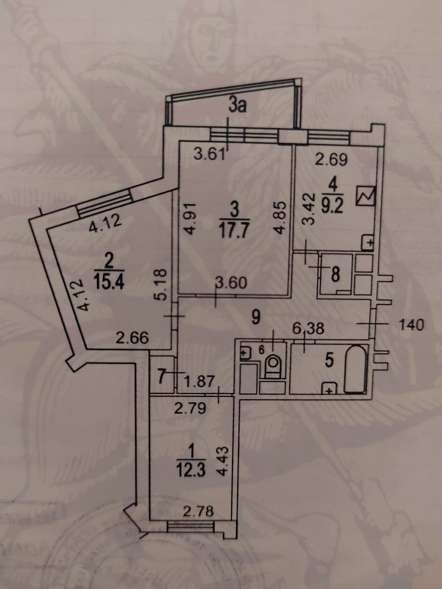 Высота потолков 2.77 м