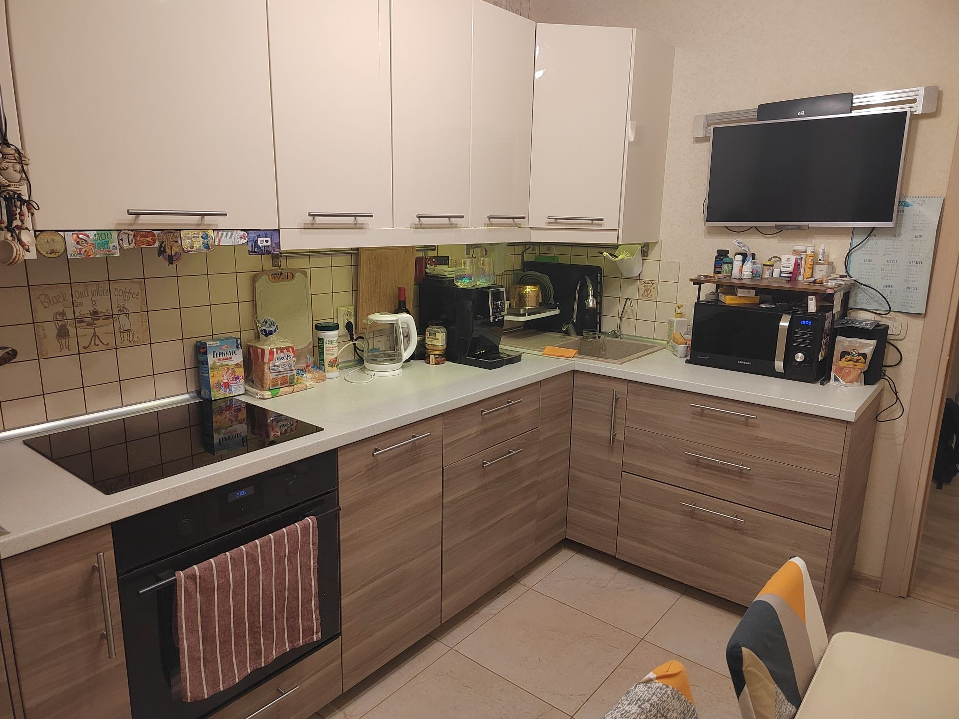 В квартире сделан ремонт.  Встроенная техника и мебель остаётся.