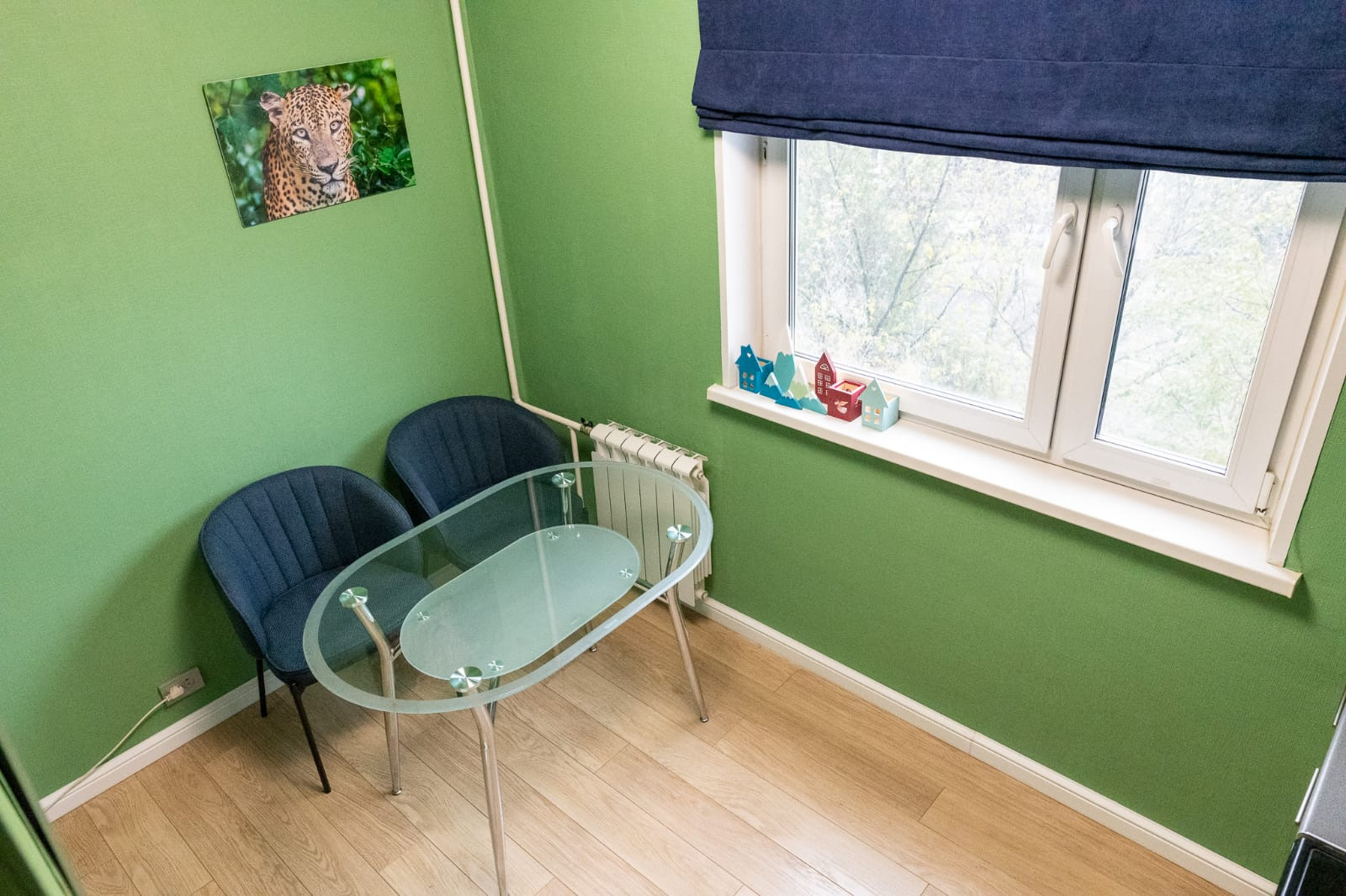 В комнате на полу новый качественный ламинат.
