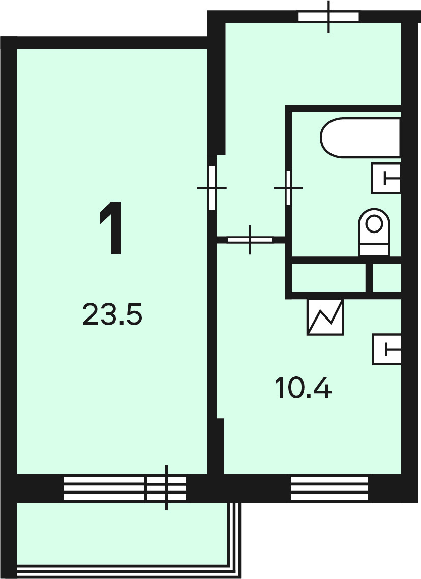 Жилая площадь 23.5 м2