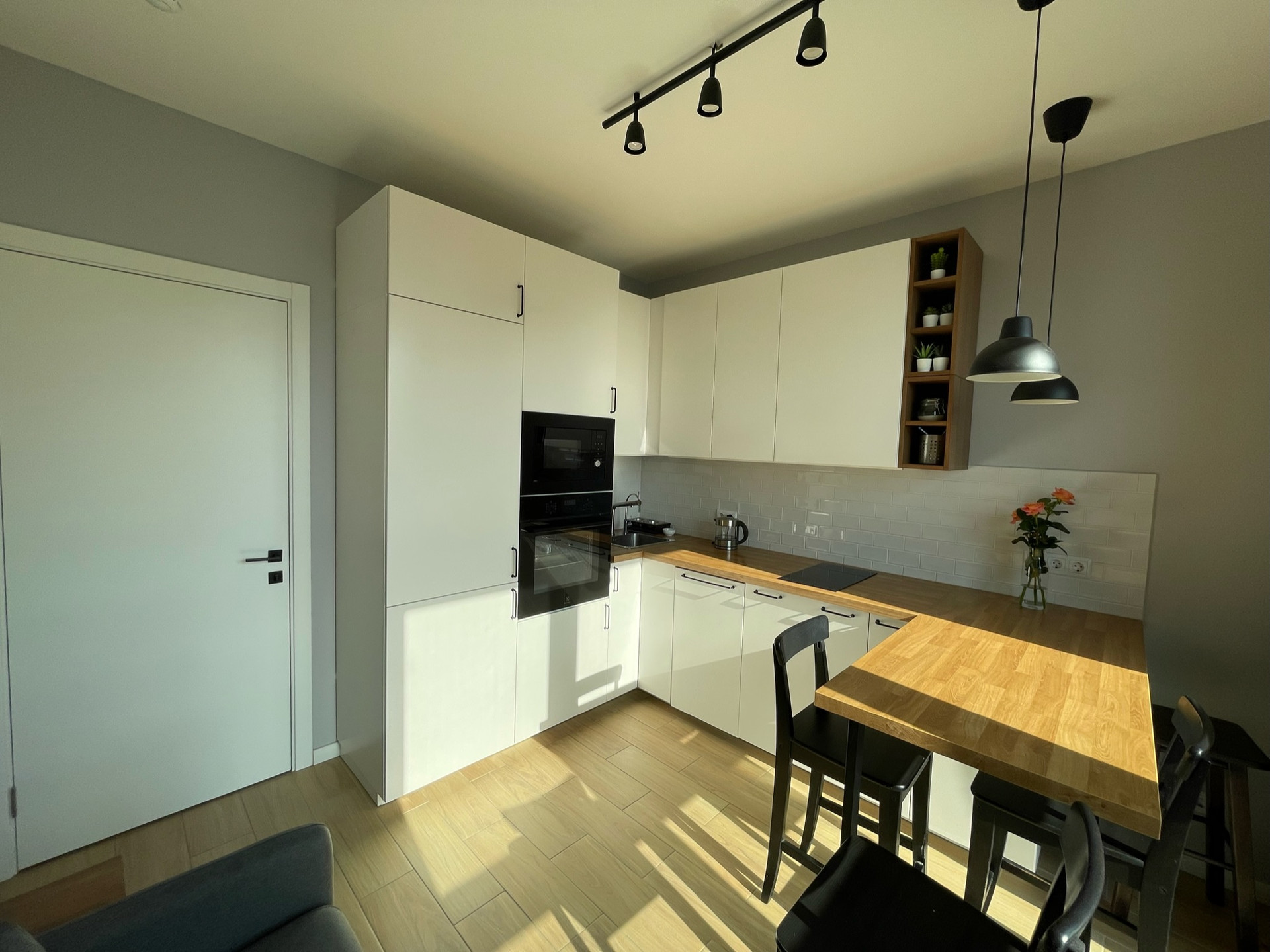 - В кухне встроенные холодильник (IKEA), СВЧ (IKEA), посудомоечная машина (Bosch), индукционная варочная панель и духовка (обе Electrolux).