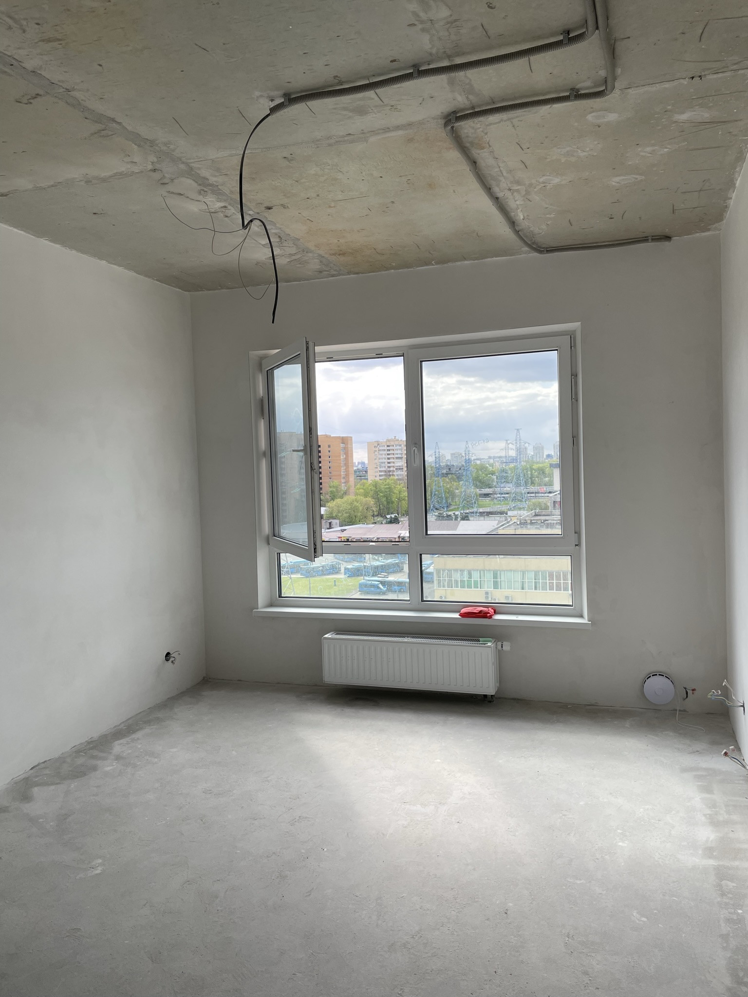 Отдeлка White Bох (шпаклёвка стен под обои, гидроизоляция санузла, стяжка полов, возможность установки кондиционера, вентиляция, разводка электрических сетей (щиток в квартире, вам только установить розетки, широкое окно). Счетчик электроэнергии в коридоре, есть прямой доступ, тариф Т3. Видео квартиры при запросе!