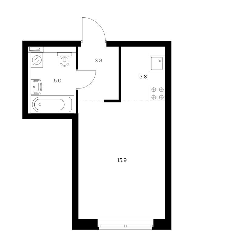 Площадь кухни 3.8 м2