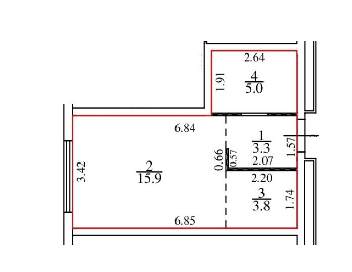 Жилая площадь 15.9 м2