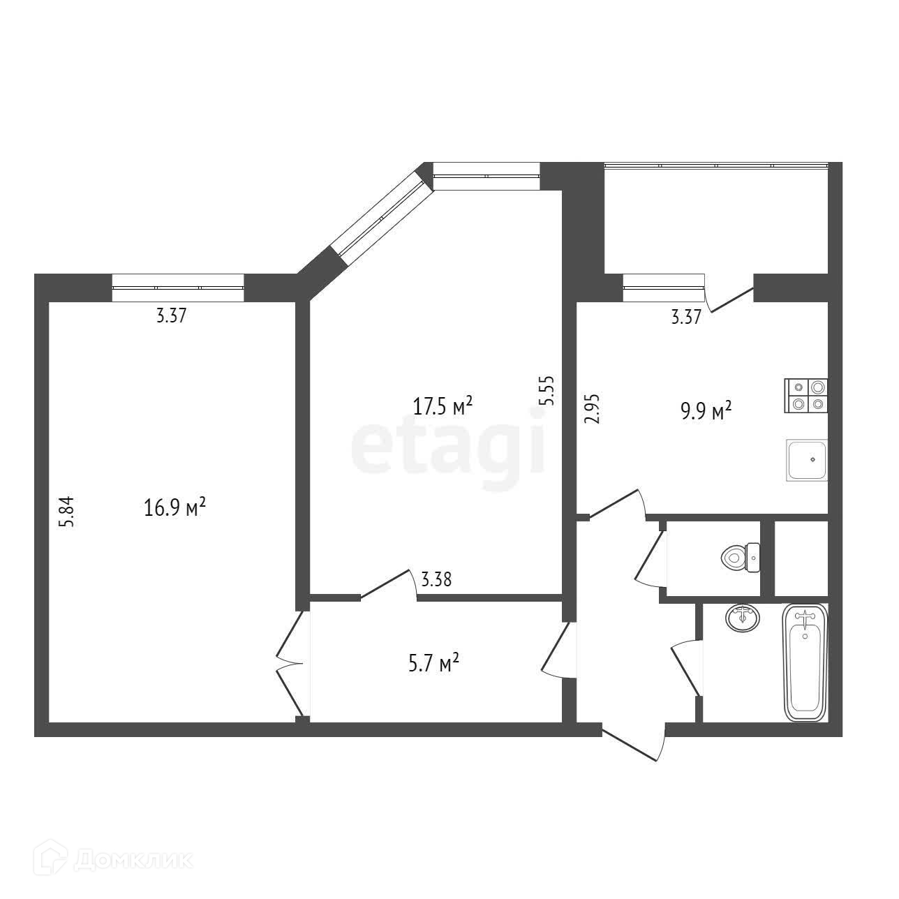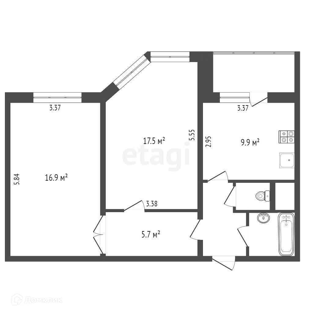Кухня с выходом на лоджию. Спальня с эркером.