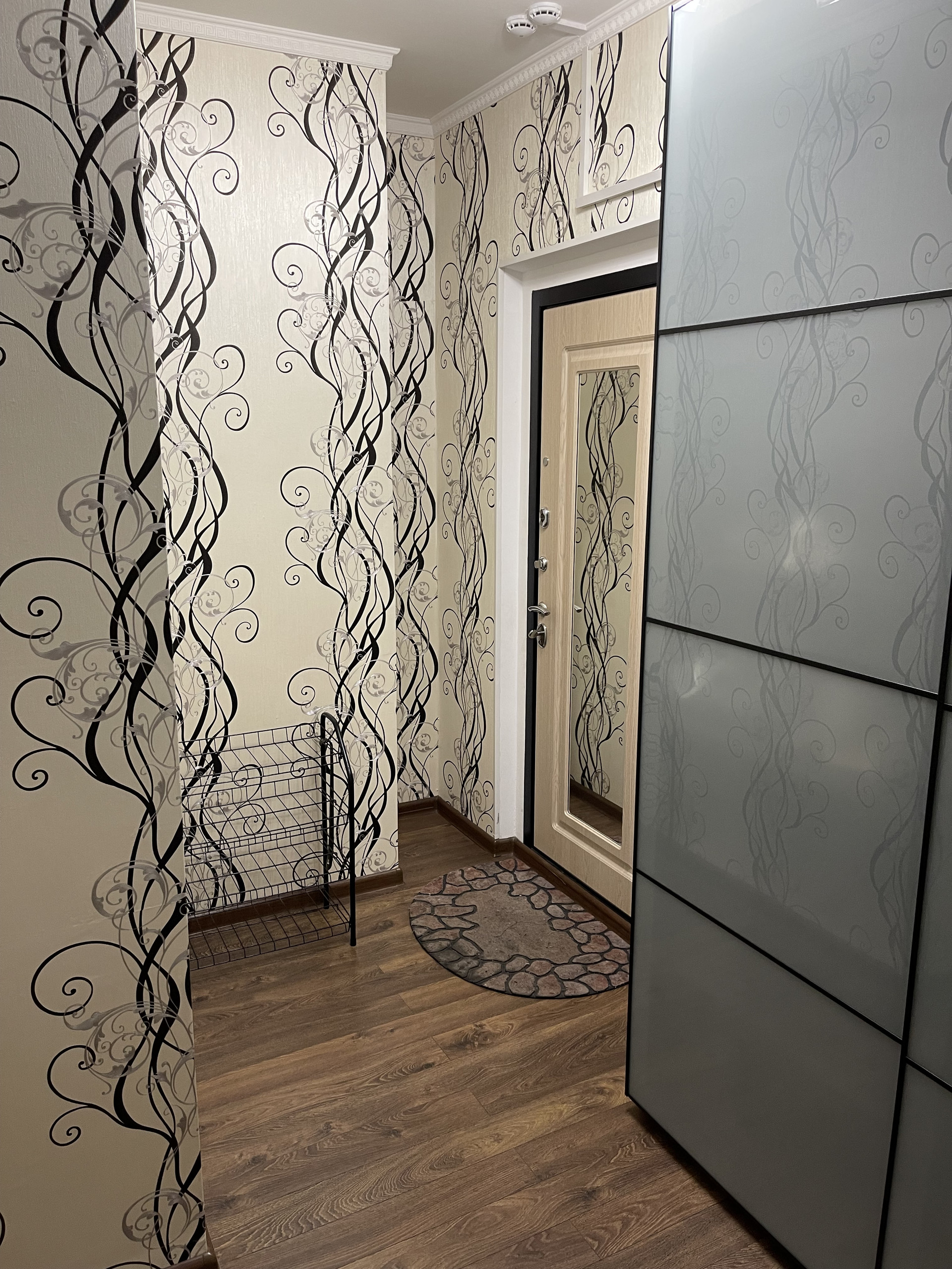 Кухня оборудована кухонным гарнитуром со встроенным холодильником, варочной панелью, духовкой, вытяжкой. В комнате большая двуспальная кровать, большой шкаф для одежды, шкаф для верхней одежды в коридоре. В ванной комнате имеется стиральная машина.