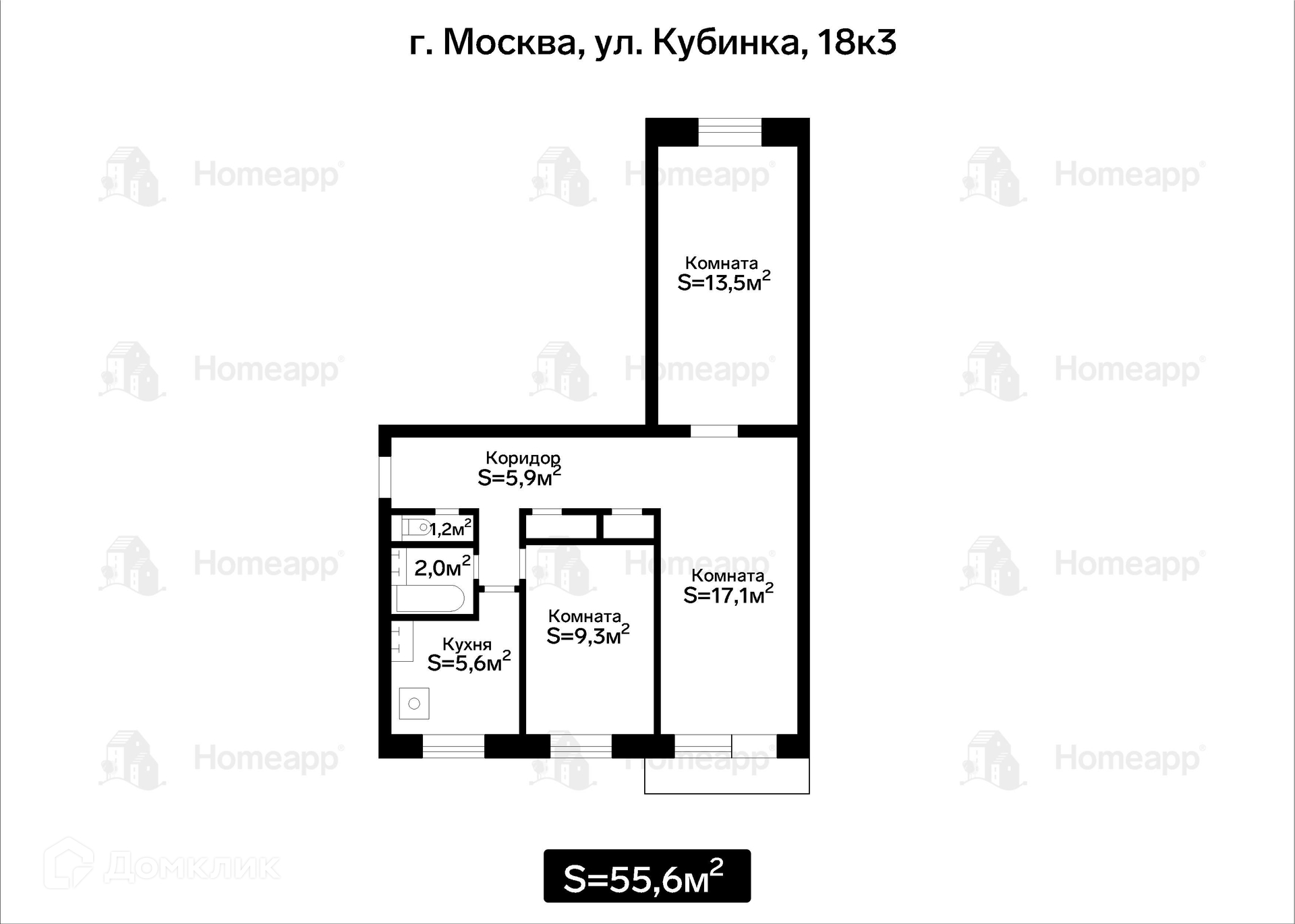 Номер лота: 78760. Предлагается 3-комнатная квартира площадью 55,7 м² в кирпичном доме, расположенном в экологически благоприятном западном административном округе, в 10 минутах пешком от станции МЦД «Рабочий посёлок» и «Сетунь». Окна выходят на две стороны - во двор и на озеленённую территорию.