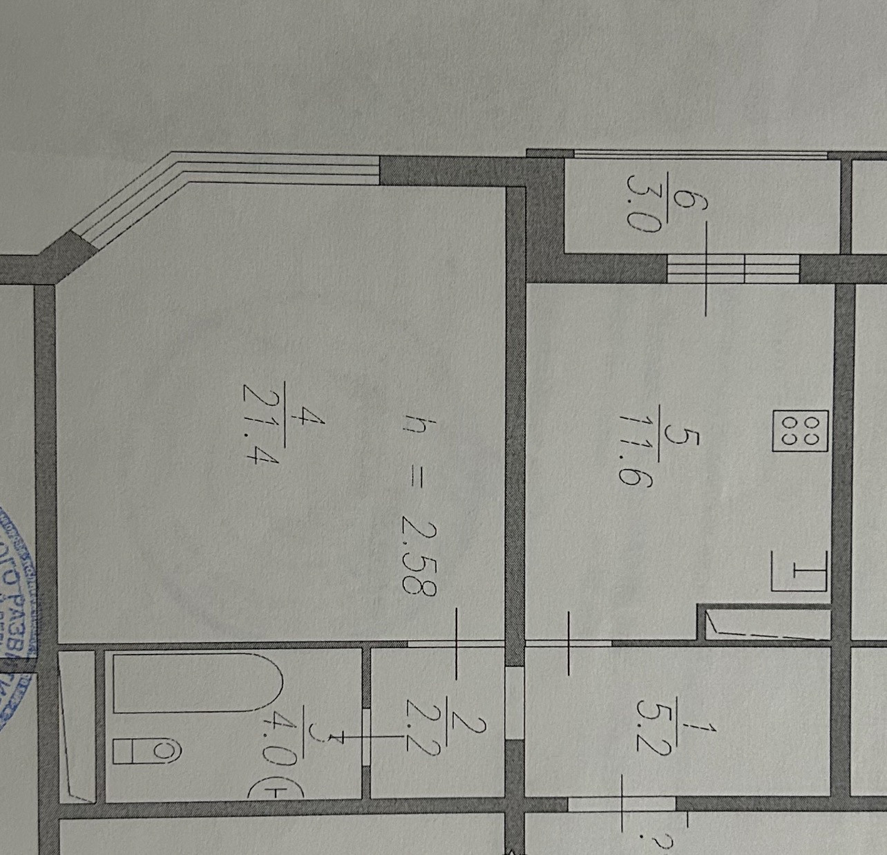 Жилая площадь 21.4 м2