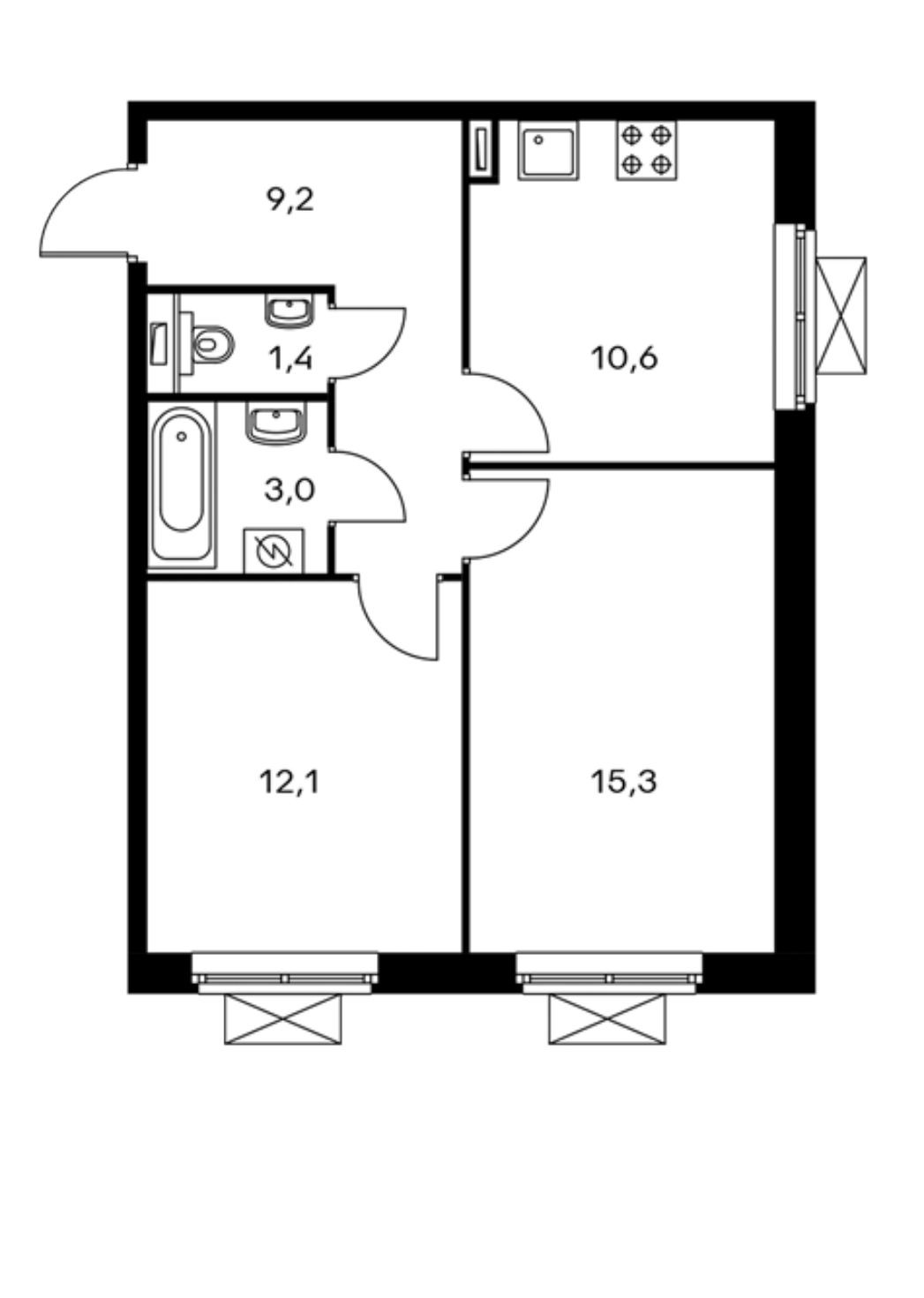 Общая площадь 51.6 м2