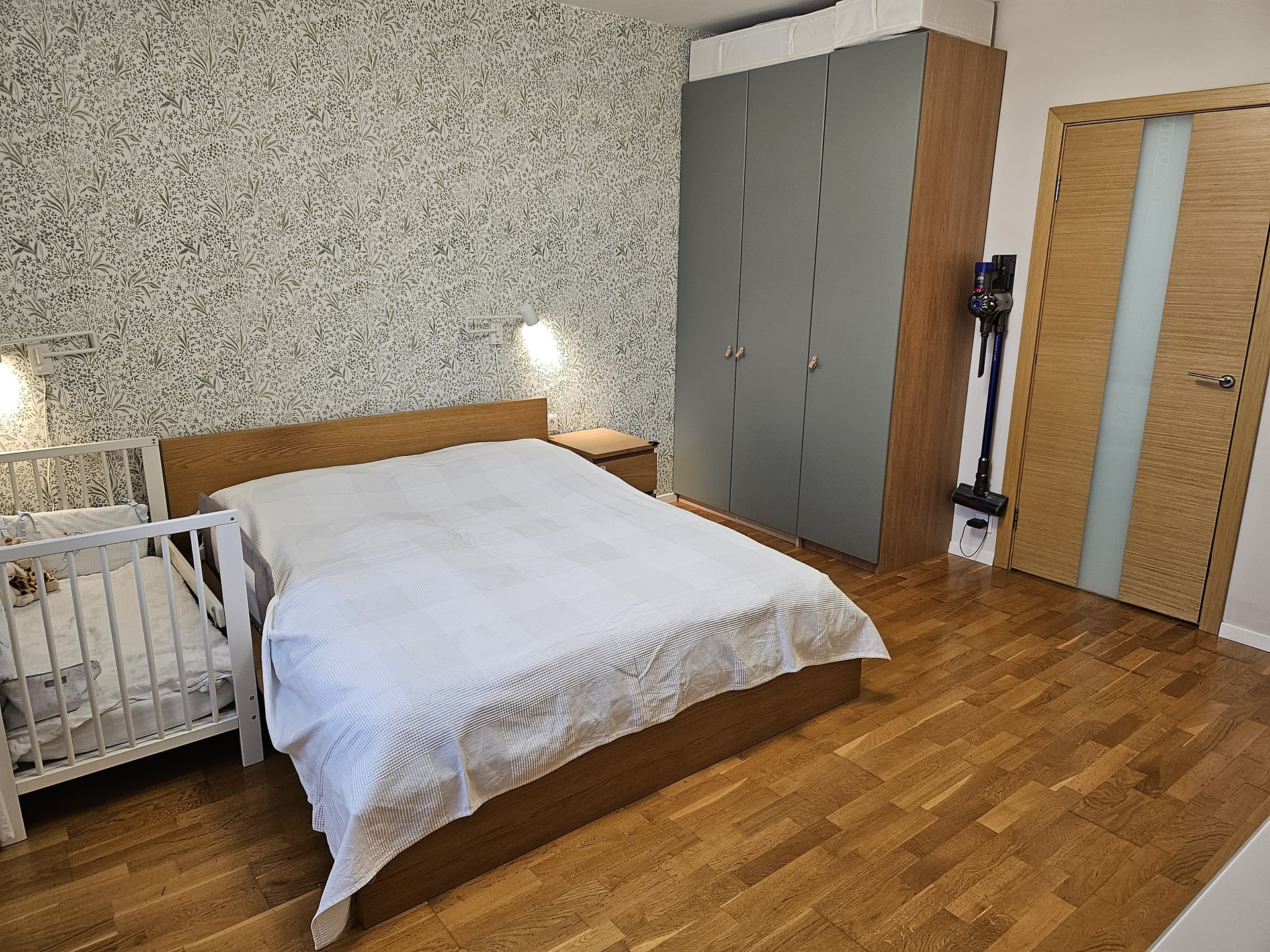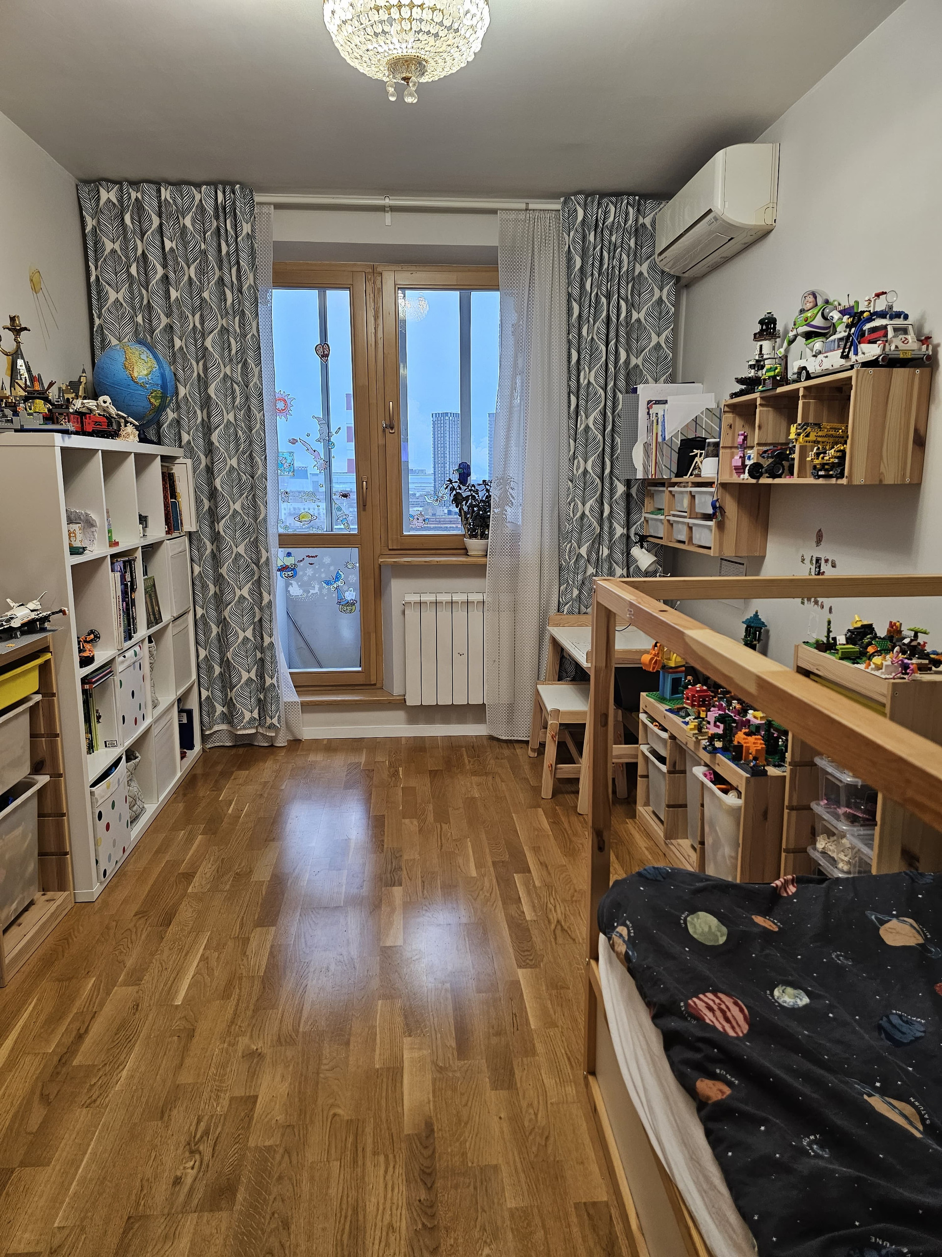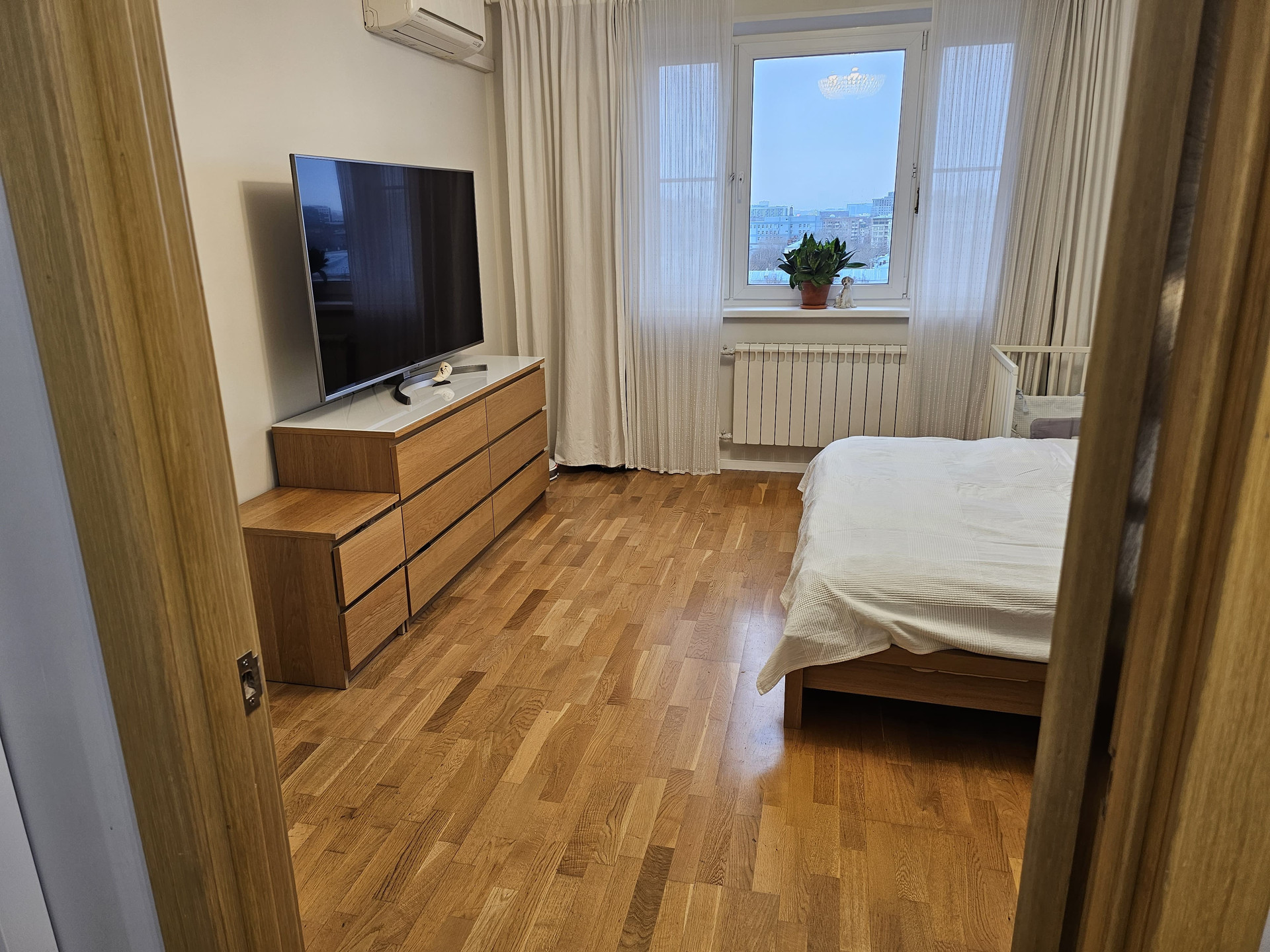 При ремонте заменена и усилена проводка и другие коммуникации. В этом году заменены все счетчики. Новые стеклопакеты, качественные кондиционеры в каждой комнате, много розеток. Комнаты изолированные, на полу паркетная доска.