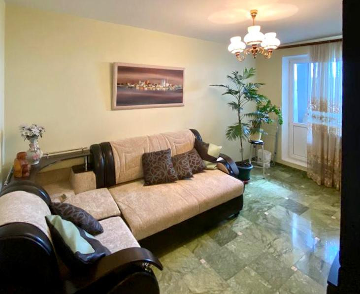 7 этаж 17 этажного панельного дома, серии П-3, общая площадь 74 м2., жилая 46 м2., (изолированные комнаты: 17.8-14.1-14.1 м2.), кухня 10,5 м2.,