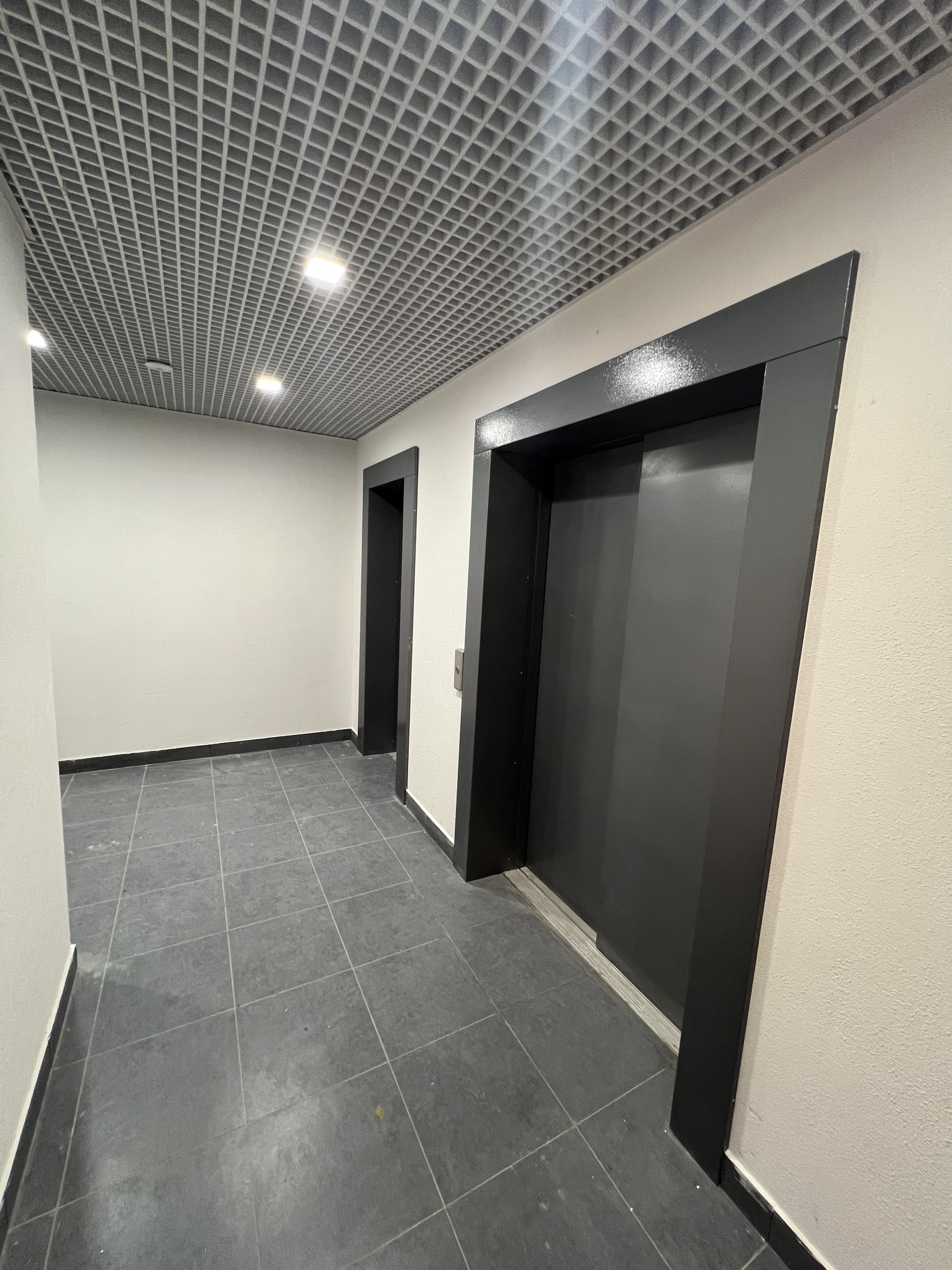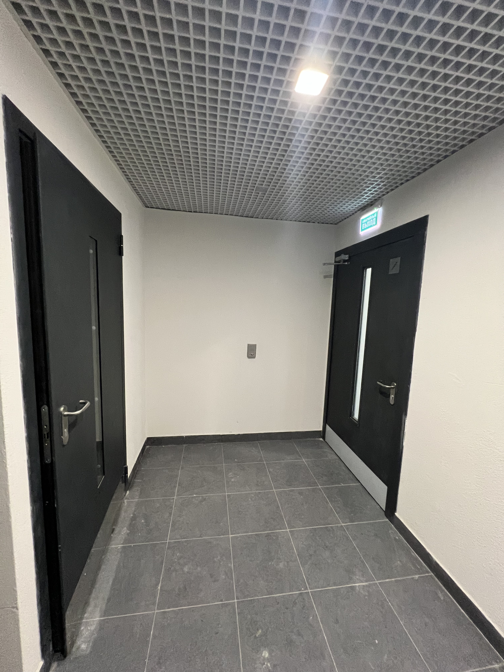 Современная сквозная входная группа (подъезд) с консьержем (планируется нанять).