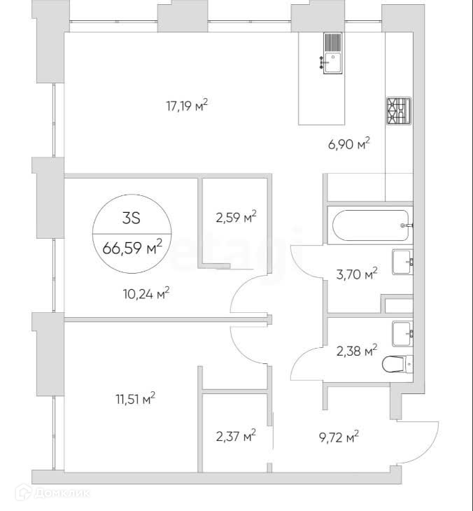 Общая площадь 66.5 м2