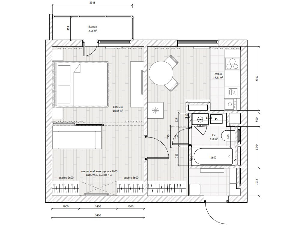 Квартира идеально подойдёт молодой паре, либо одинокой девушке или мужчине.