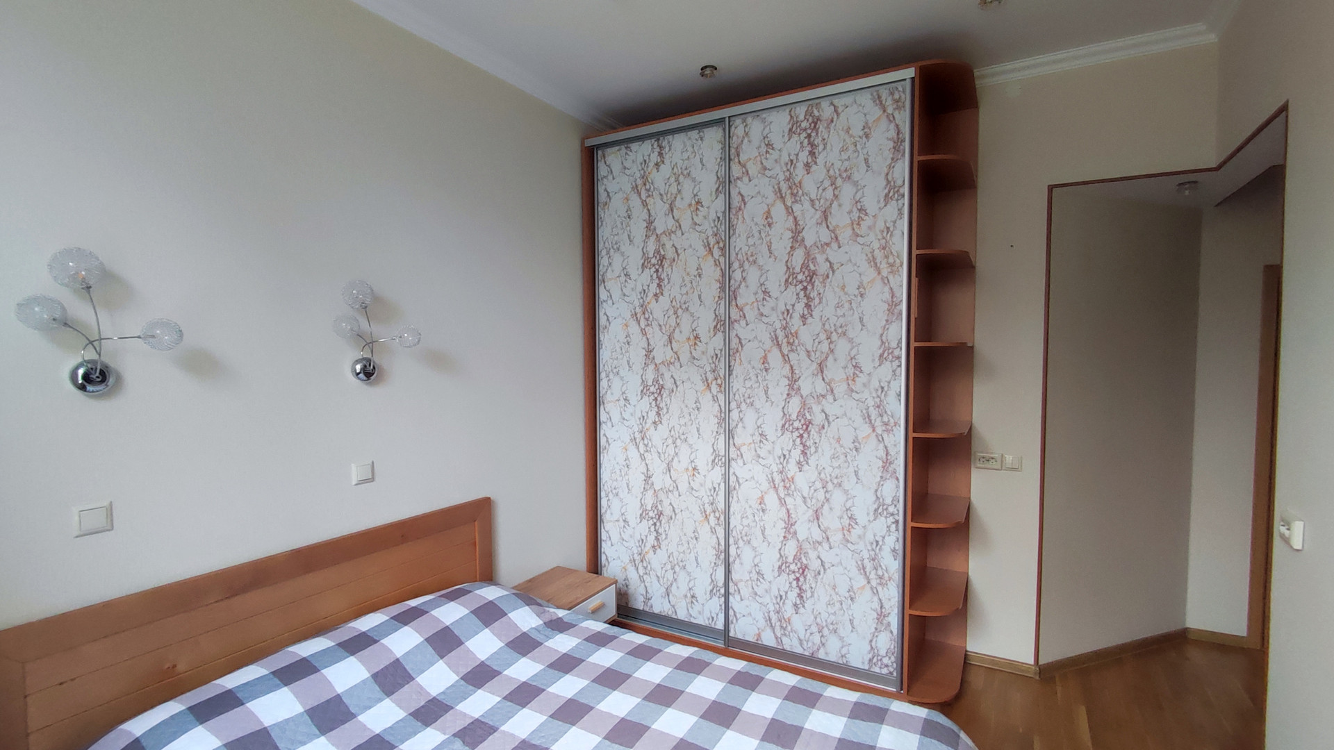 перепланировка без затрагивания несущих конструкций - из смежно-изолированной в полностью изолированную (3 отдельные комнаты + гардеробная). Полы в комнатах – паркетная доска; в прихожей, коридоре, кухне, санузеле – плитка с системой «теплый пол». Батареи оснащены кранами Bugatti для регулировки температуры.