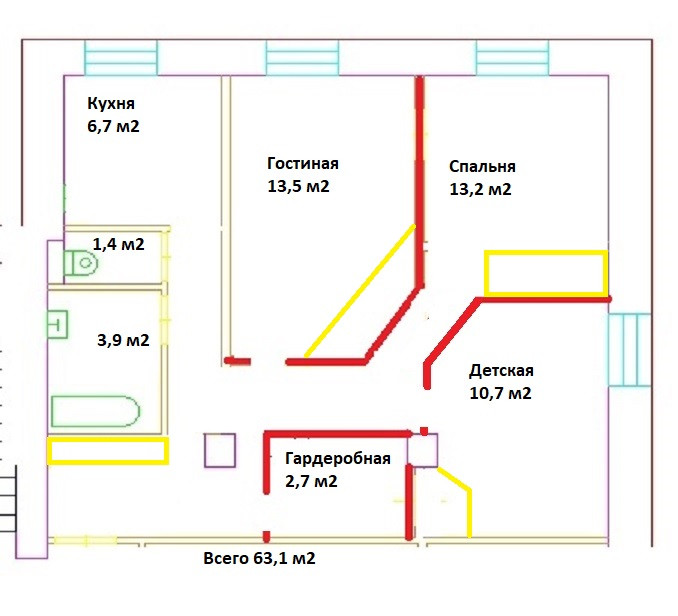 Общая площадь 63.1 м2