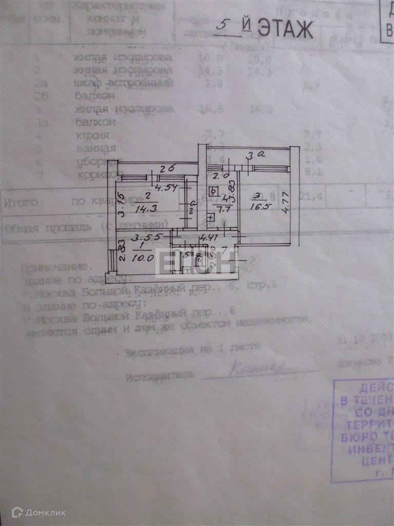 3-комнатная квартира, 62.2 м2, этаж 5 / 13, на продажу в Москве, Большой Казённый переулок, 6