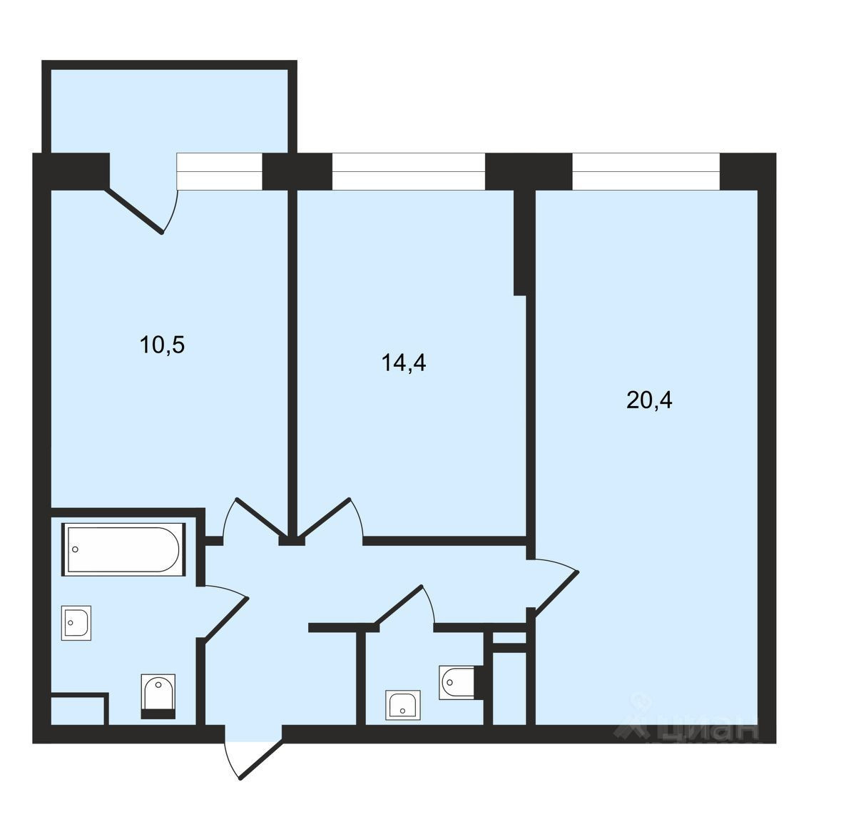 Общая площадь 59 м2