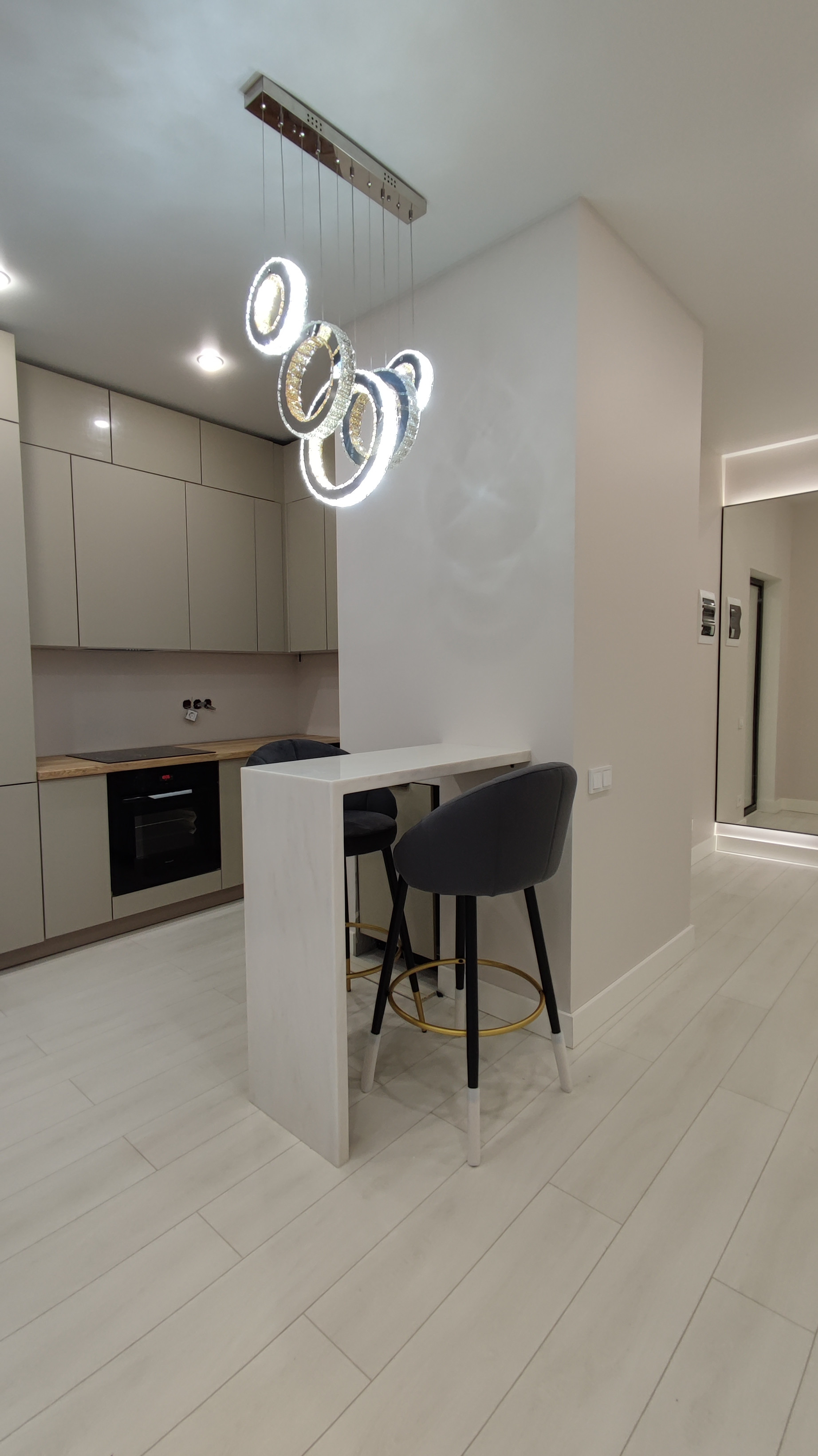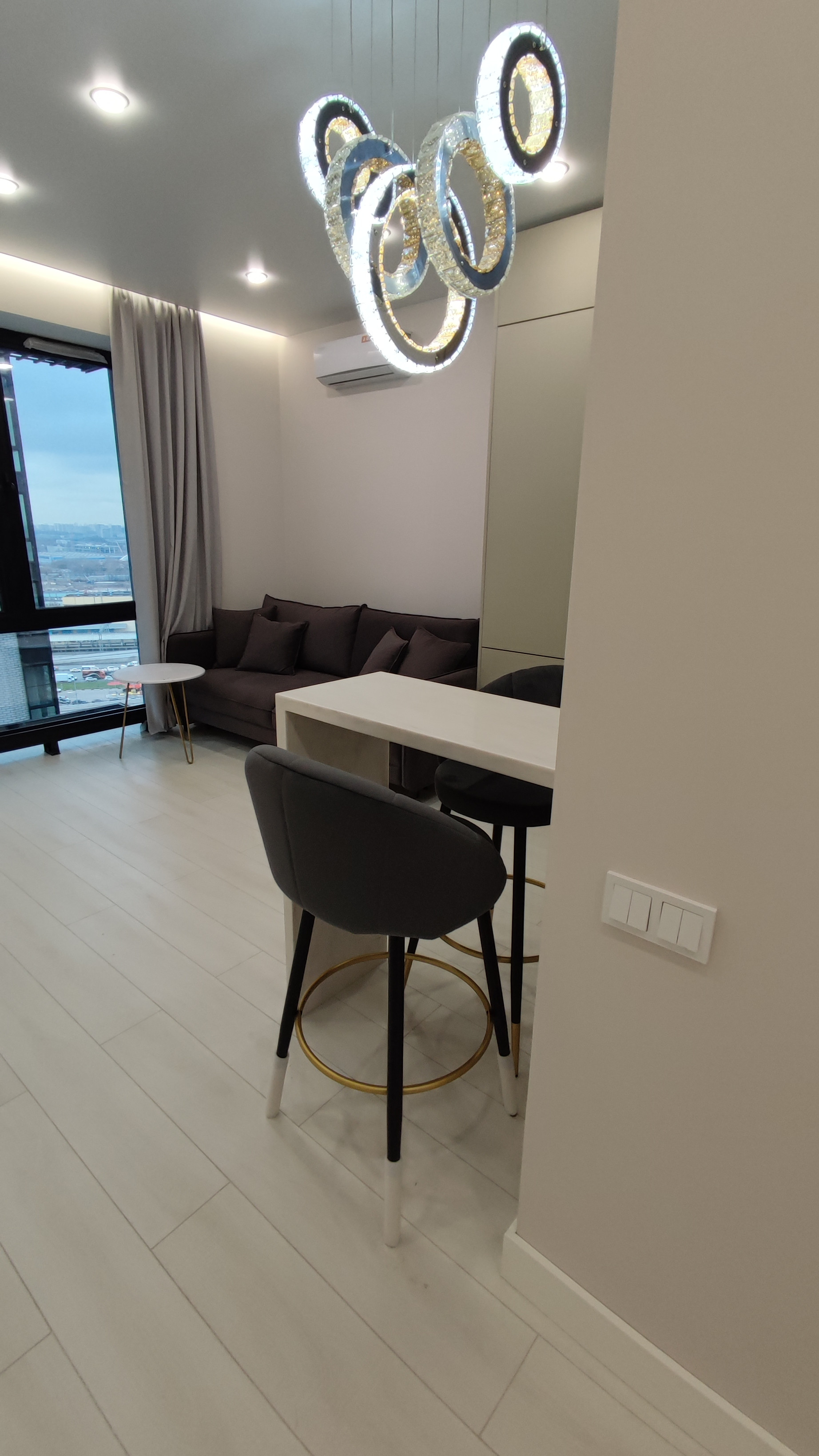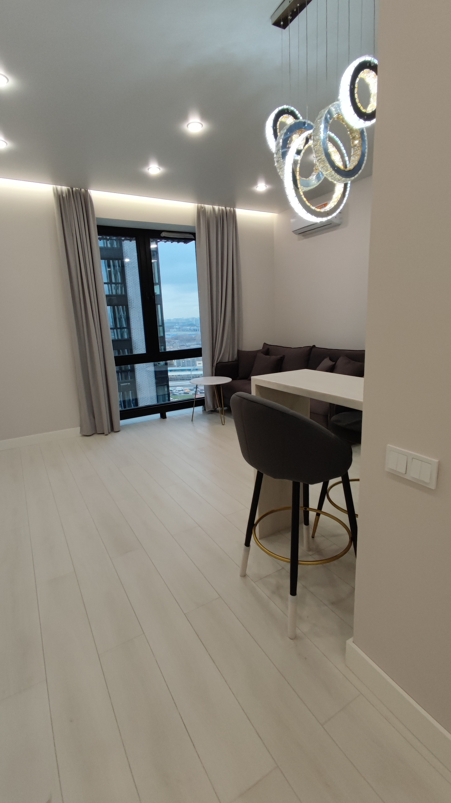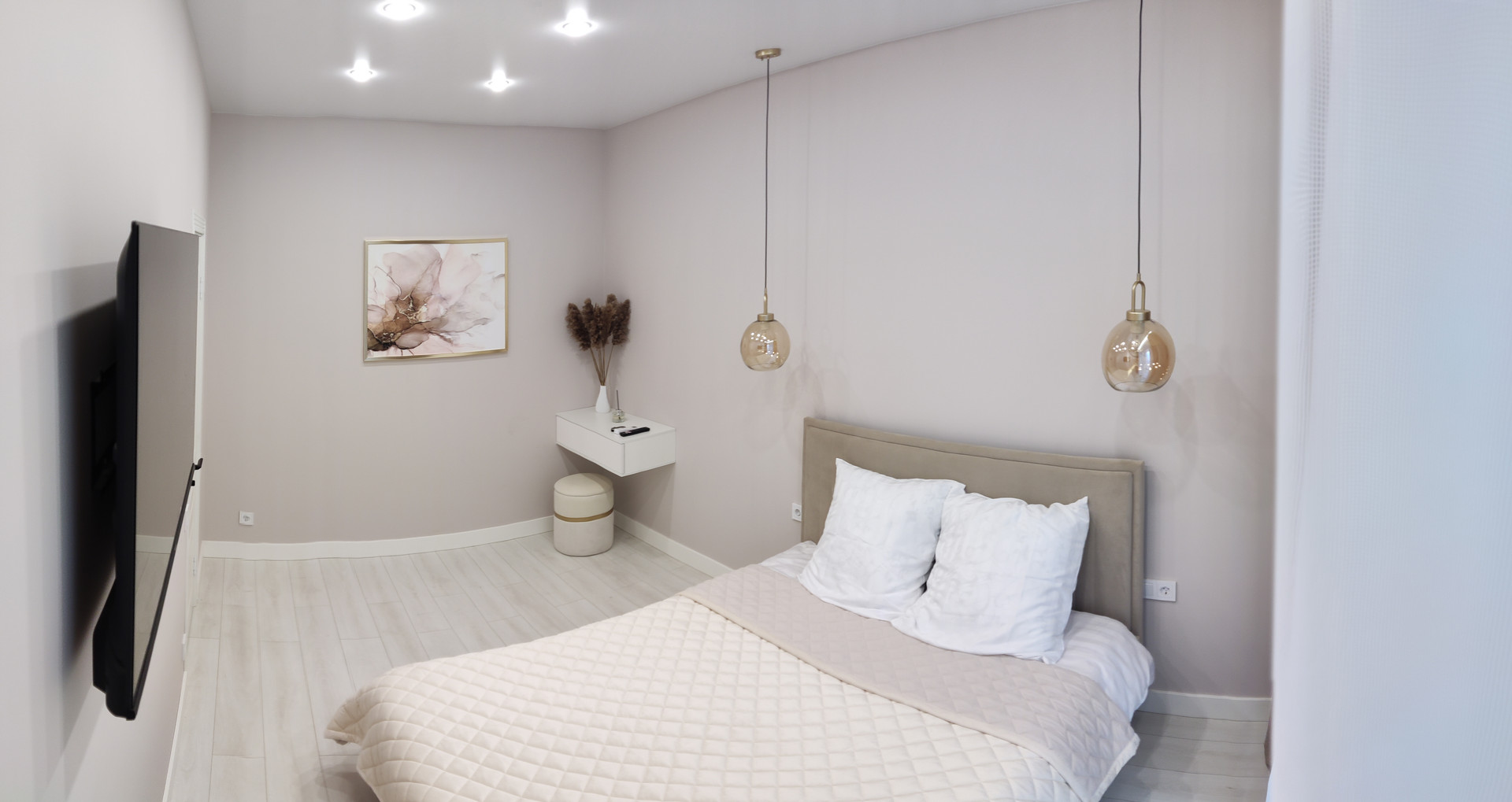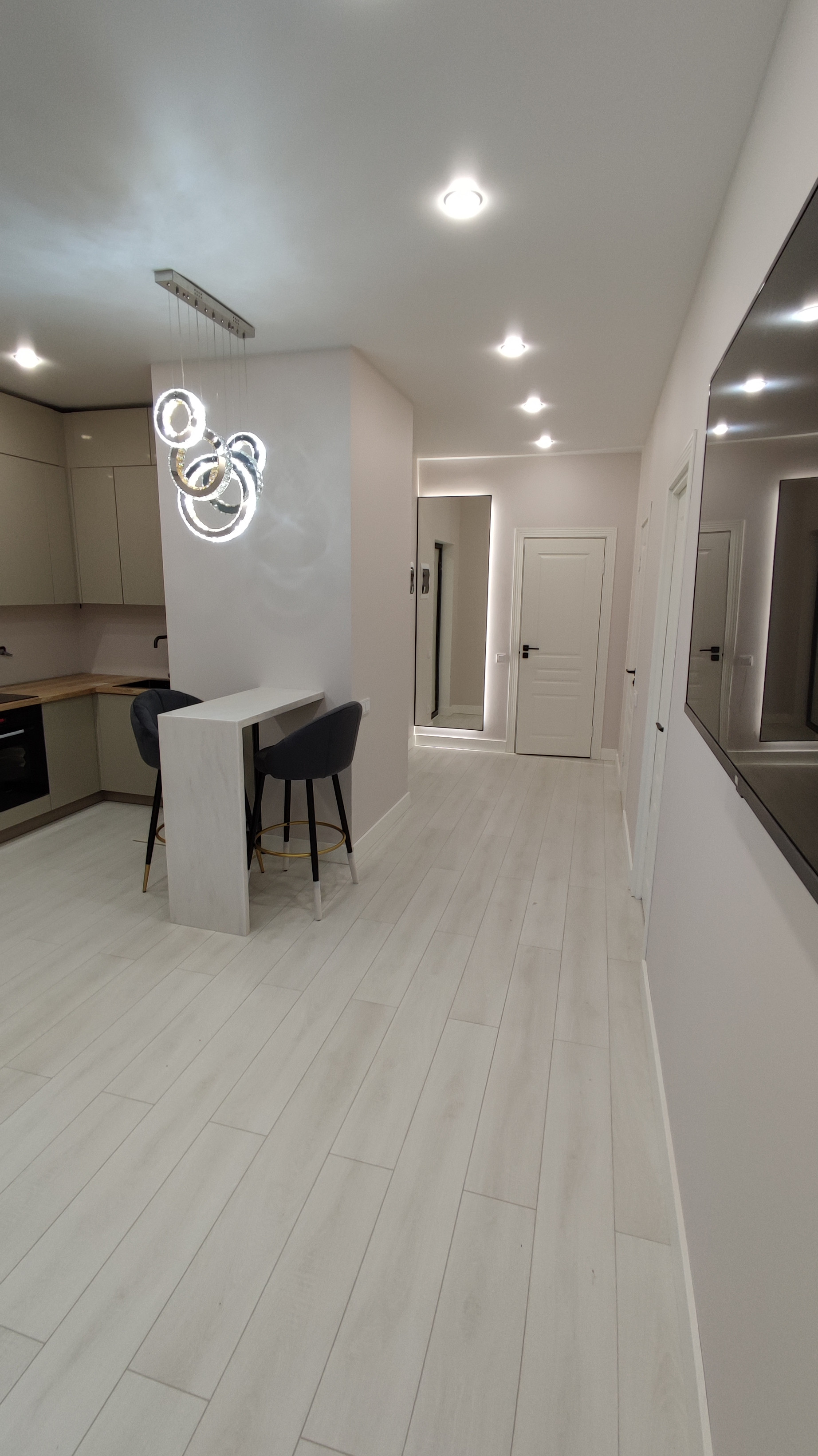 Удачная планировка, большая просторная спальня, гардеробная и кухня-гостиная.