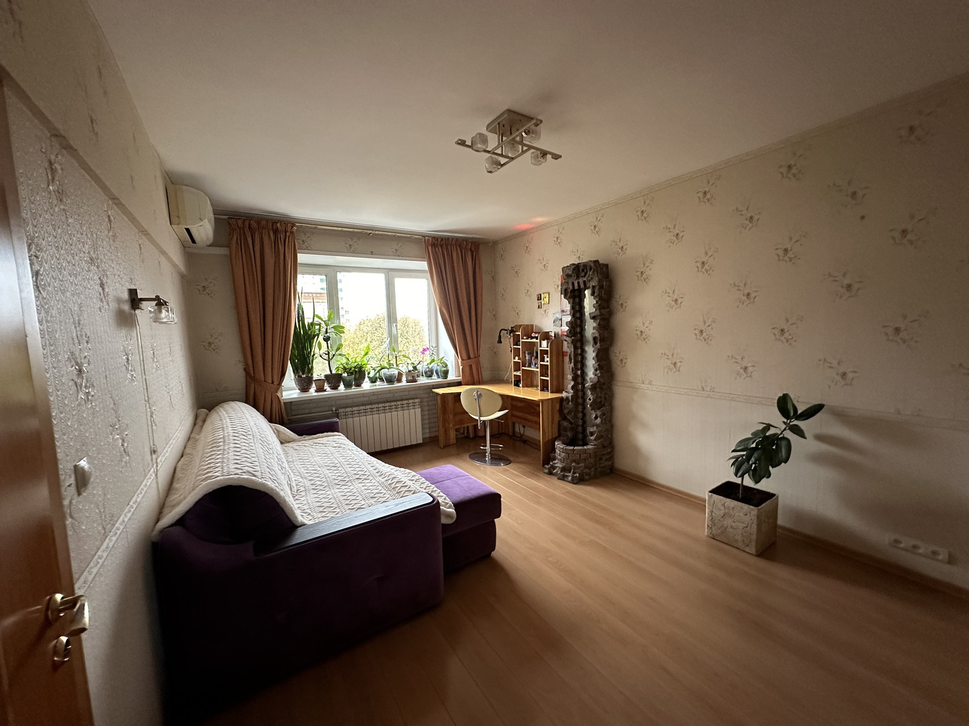 Комфортная, теплая, светлая  квартира с 2 с/у.  Качественный ремонт .  В шаговой доступности сады, школы, удобная развязка для авто, рядом остановки автобуса и трамвая. Чистый подъезд. Парковка во дворе за шлагбаумом, наличие свободных мест. Тимирязевский парк в 5 минутах ходьбы. Один собственник, более 10 лет. Земля под домом оформлена в собственность. В услугах риэлторов не нуждаемся.