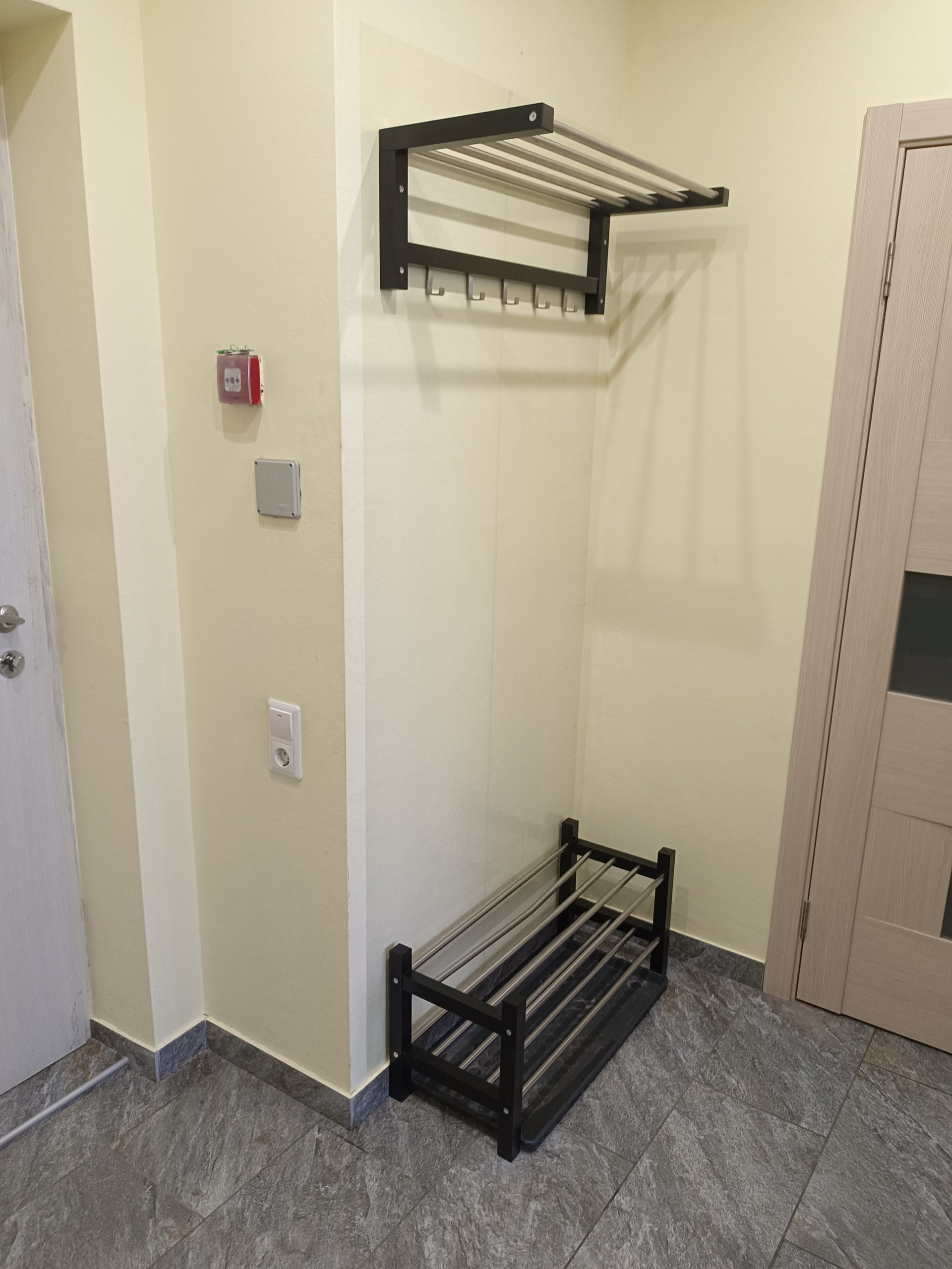 Места для хранения предостаточно - в комнате расположен вместительный шкаф-купе во всю стену, а также в квартире присутствует очень вместительная гардеробная/подсобка.