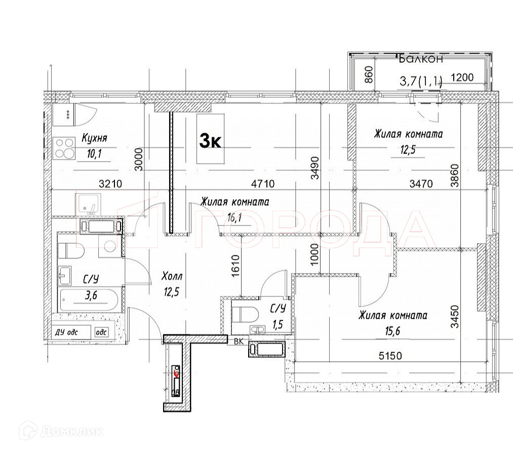 Количество комнат 3