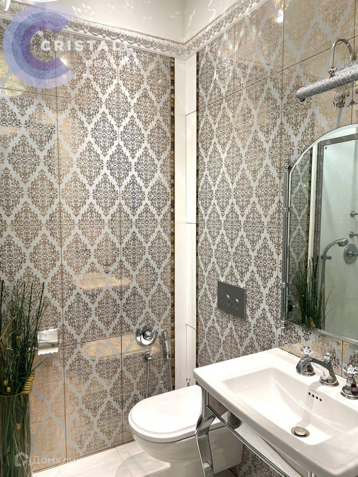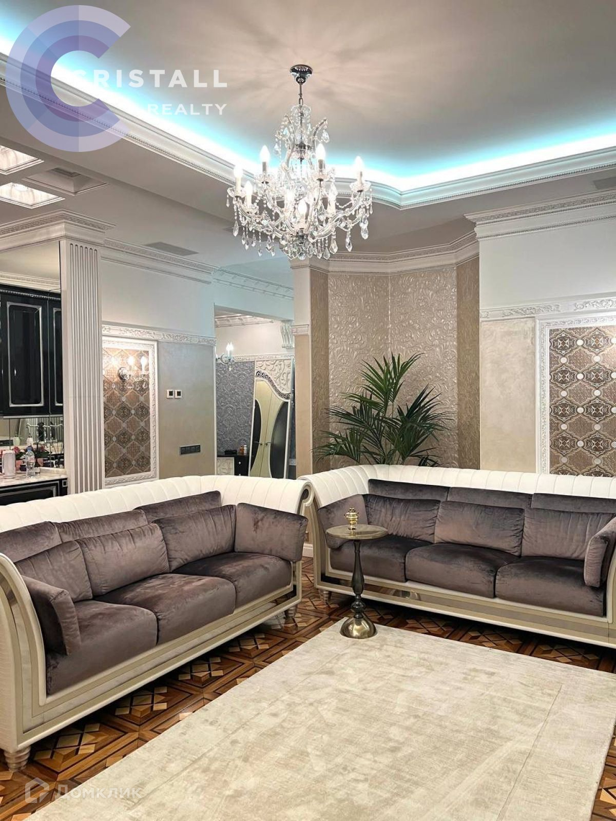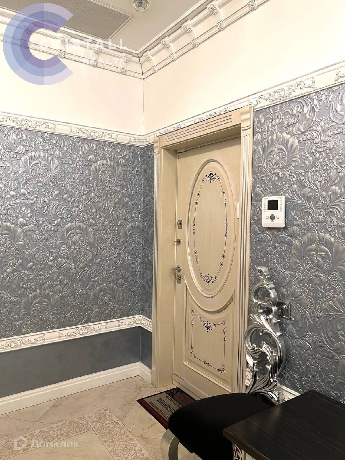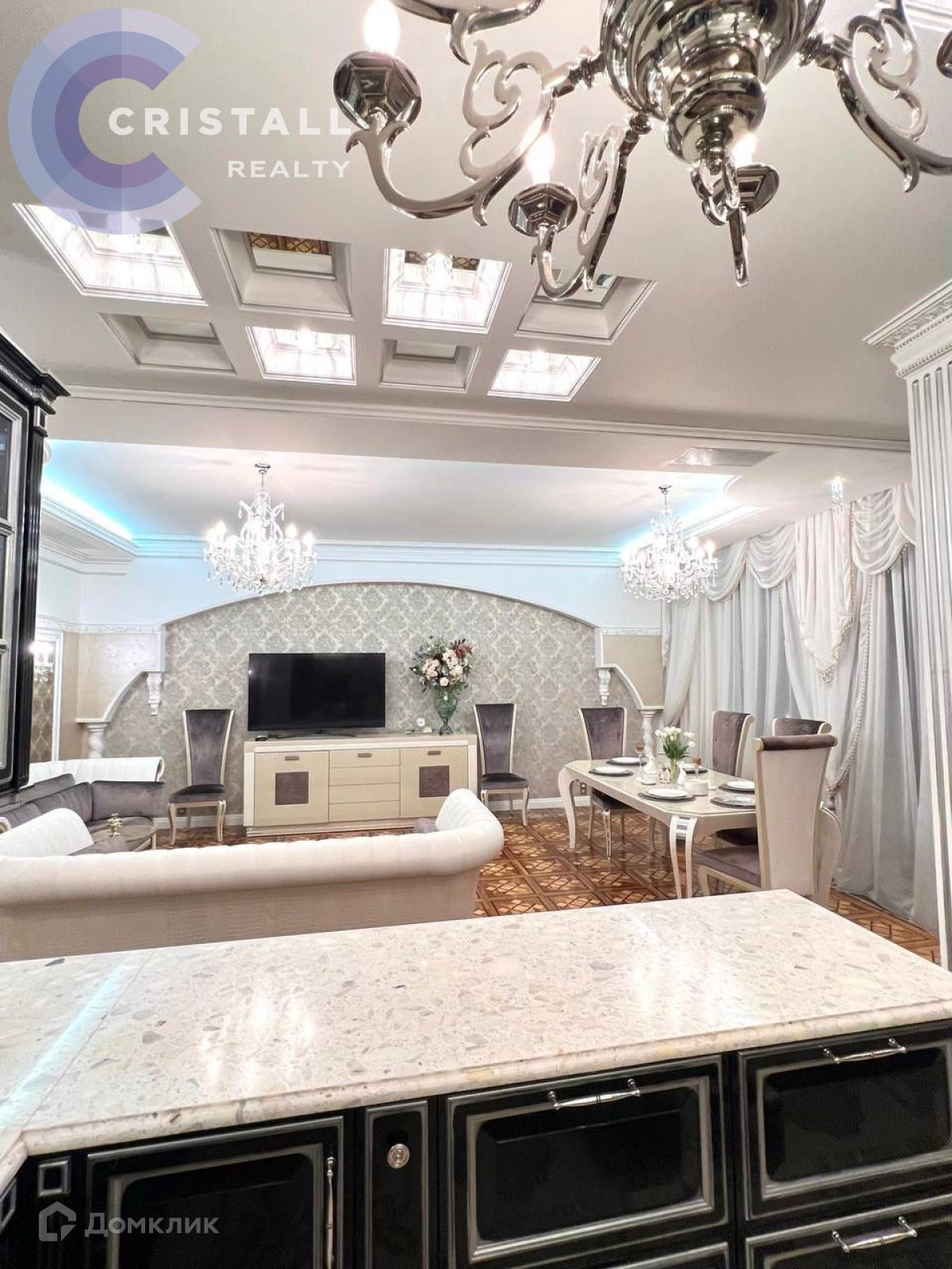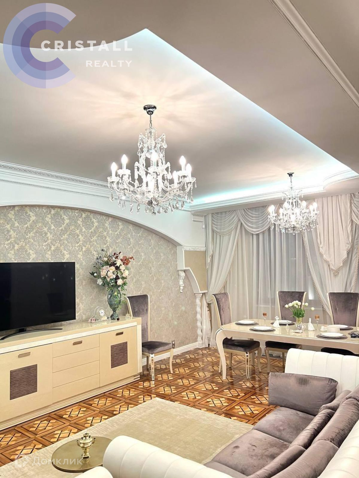 Дизайнерский ремонт с использованием дорогих материалов: на стенах лепнина ручной работы, в ремонте использованы вкрапления серебра и золота, в освещении использованы кристаллы Swarovski, на полу в жилых комнатах паркет, в прихожей, кухне и санузлах полы с подогревом. Датчики контроля протечки.