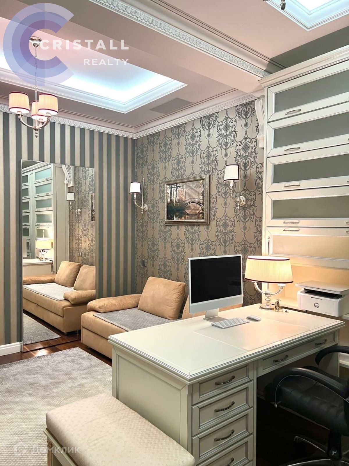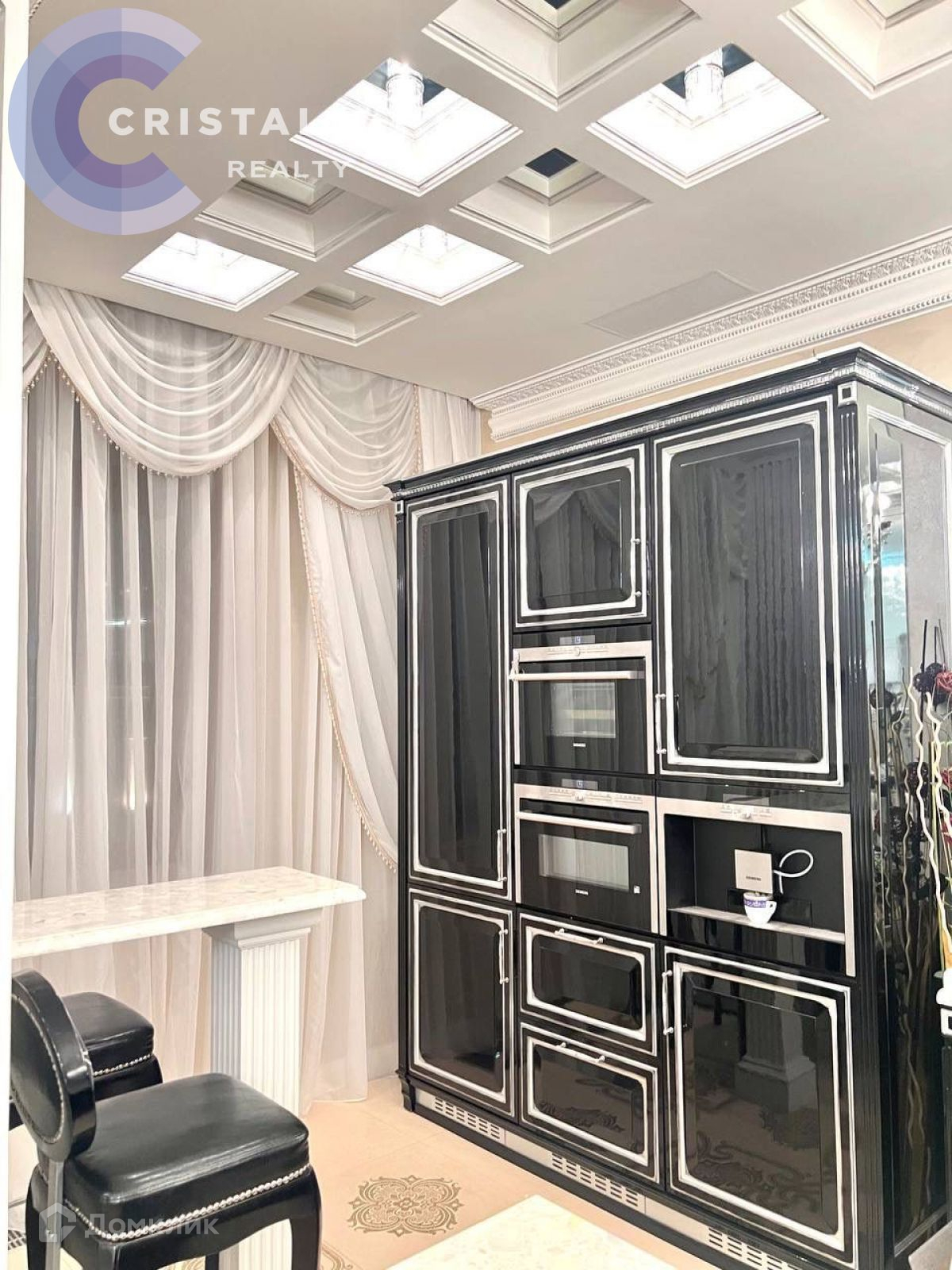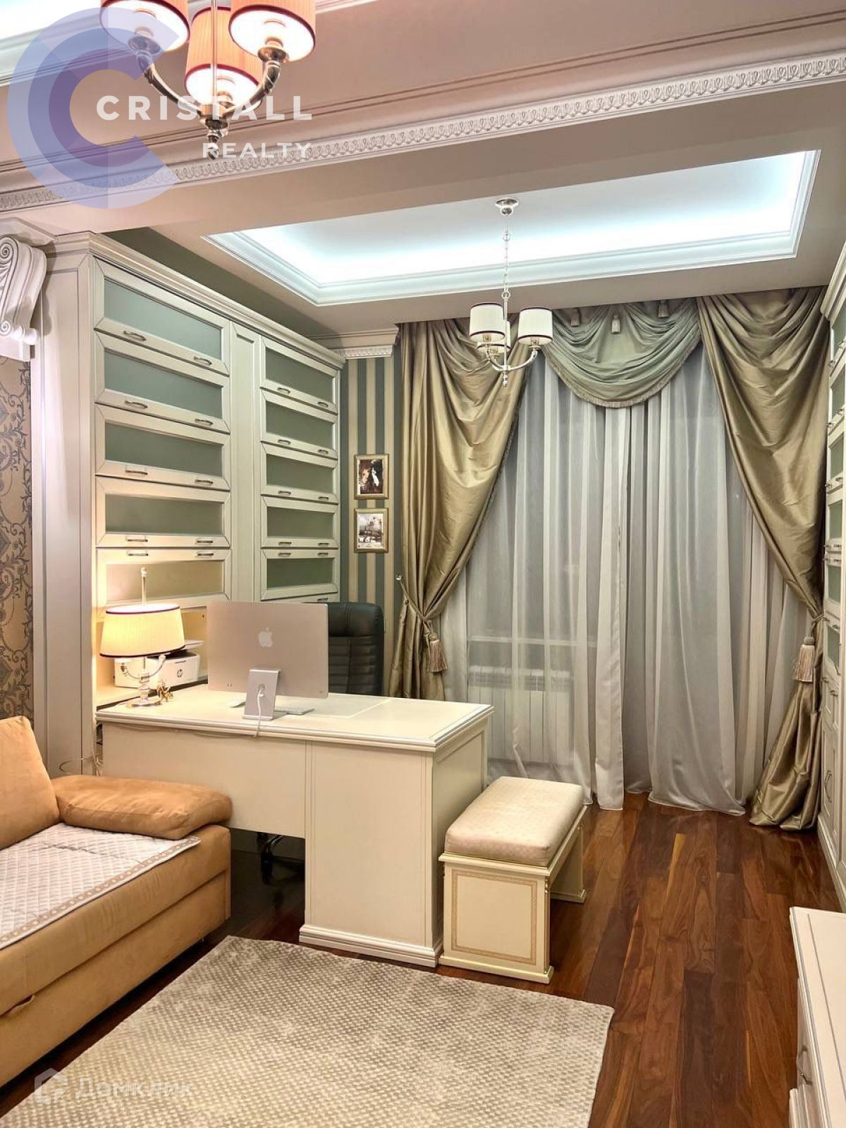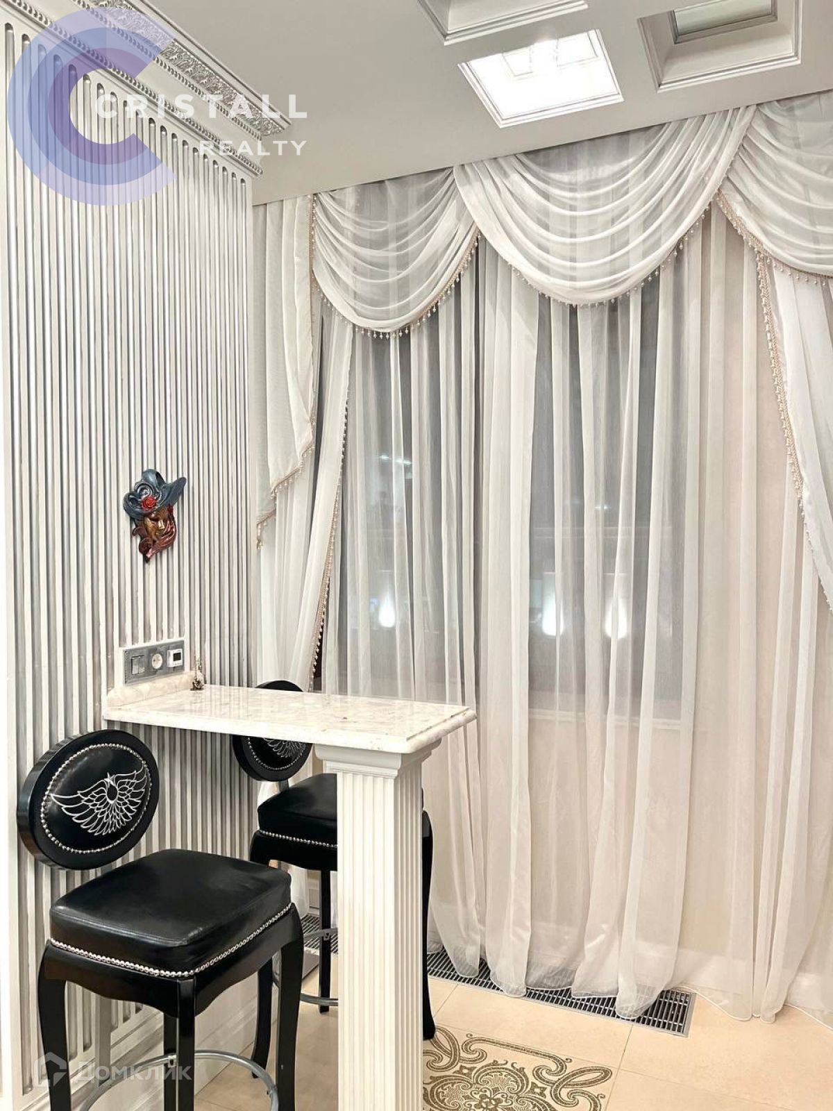 Дизайнерский ремонт с использованием дорогих материалов: на стенах лепнина ручной работы, в ремонте использованы вкрапления серебра и золота, в освещении использованы кристаллы Swarovski, на полу в жилых комнатах паркет, в прихожей, кухне и санузлах полы с подогревом. Датчики контроля протечки.