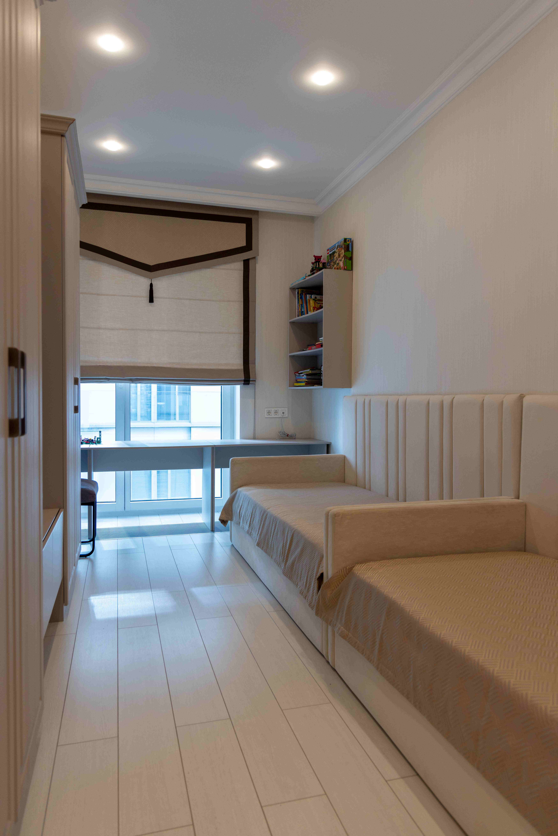 Большой холл, просторная гостиная с панорамными окнами объединенная с кухонной зоной, уютная спальня с кабинетом, который обустроен на тёплой лоджии, удобная большая детская комната, первый санузел с душевой кабиной, второй санузел с большой ванной из искусственного камня, постирочная.