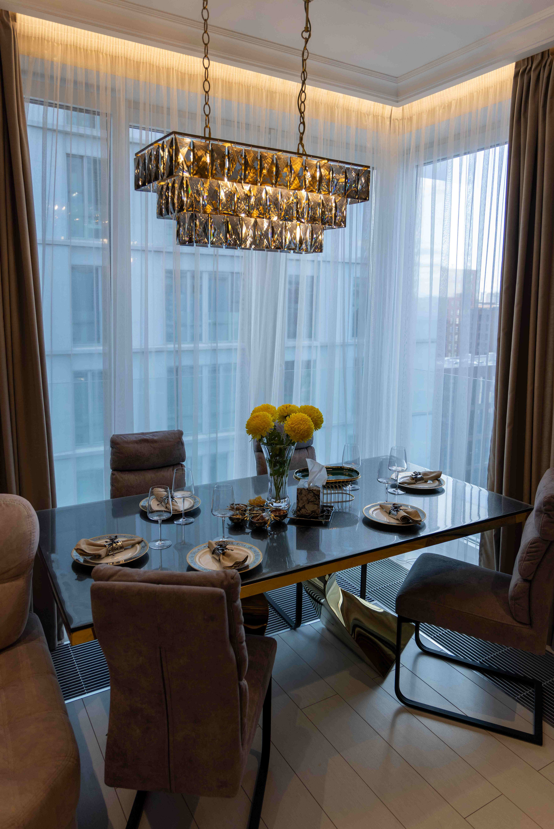 Выполнен дорогостоящий ремонт под авторским и техническим надзором специалистов, с использованием экологичных и натуральных материалов. В квартире предусмотрены самые передовые технологии освещения, программируемые теплые полы, автоматика АВВ, кондиционеры.