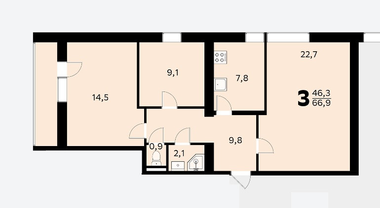 Количество комнат 3