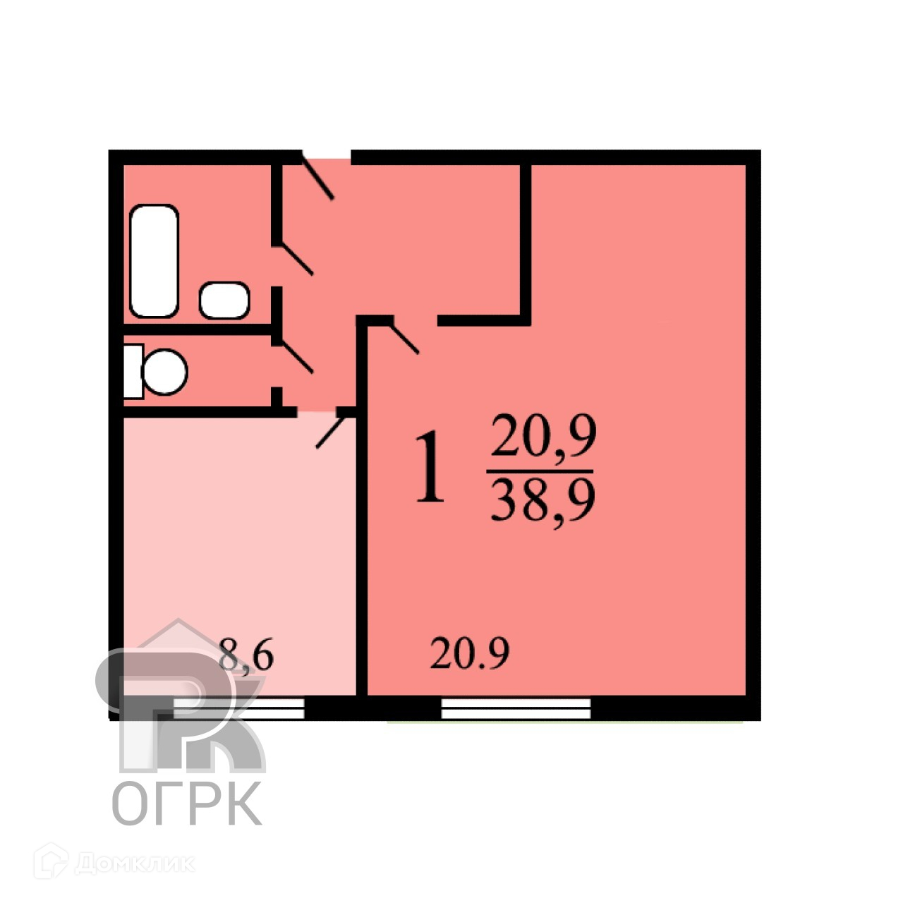 Общая площадь 38.9 м2