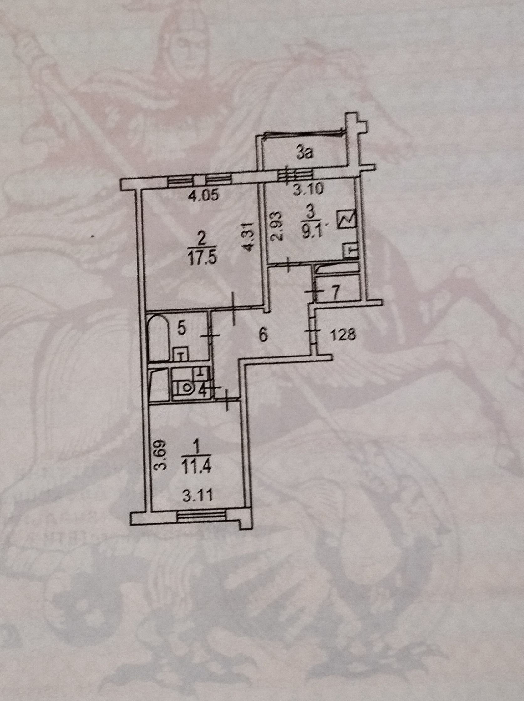 Общая площадь 54 м2