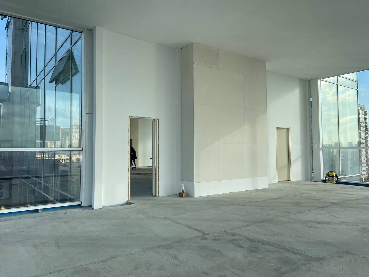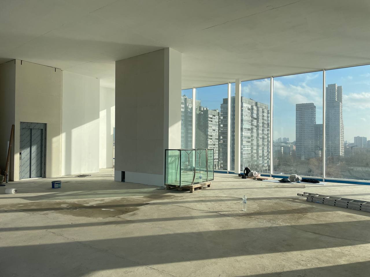 Открытое пространство квартиры позволит воплотить любые архитектурные и дизайнерские решения, выполнена стяжка на полу, имеется отдельный выход на пожарную лестницу, а также - техническое помещение.