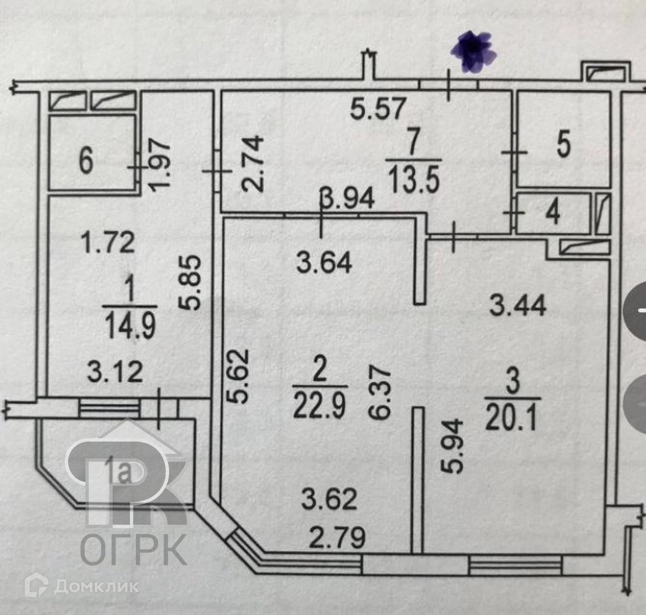Общая площадь 77.2 м2