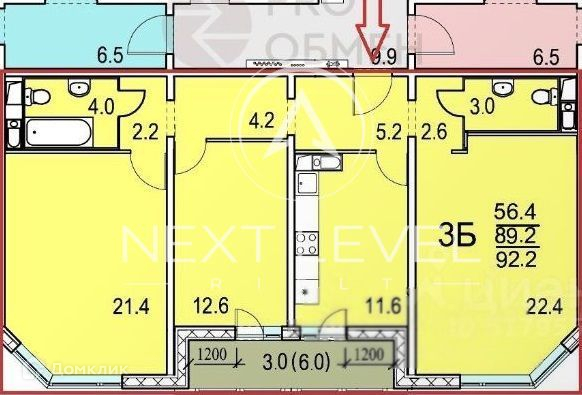 Общая площадь 92.2 м2