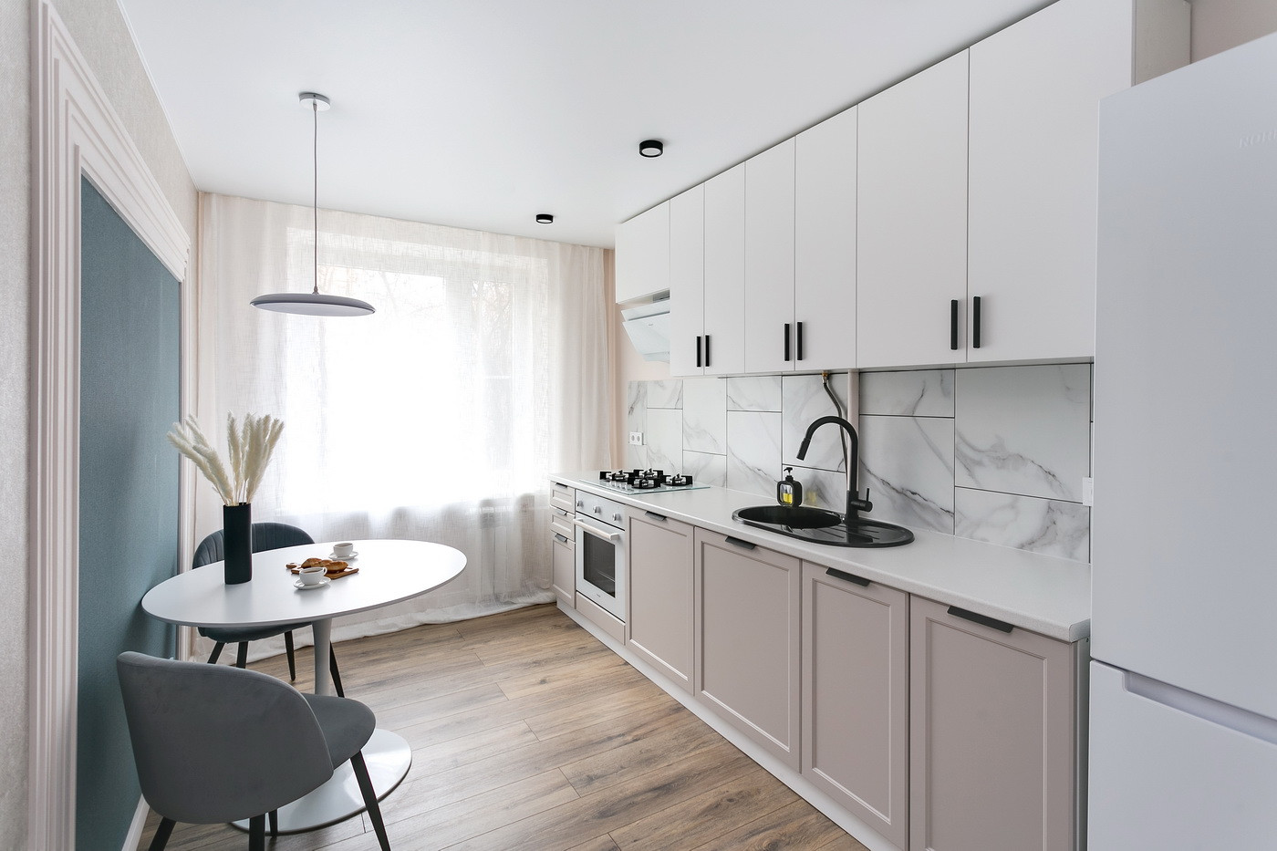 Шикарная светлая квартира с акцентными стенами, площадью 42 кв.м., расположена на удобном 3 этаже 12-этажного дома. На стильной и современной 10-метровой кухне удобно и легко будет собираться всей семьей. Благодаря продуманному дизайнерскому решению в квартире реализована выделенная гардеробная, разделены спальня и зона гостиной.