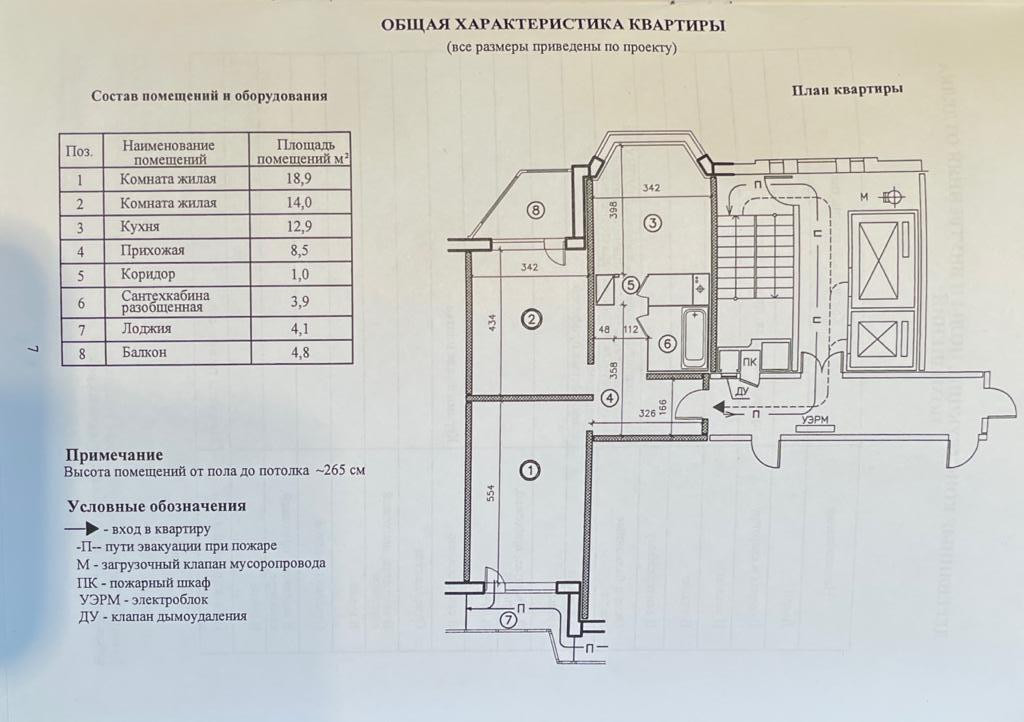 Высота потолков 2.65 м