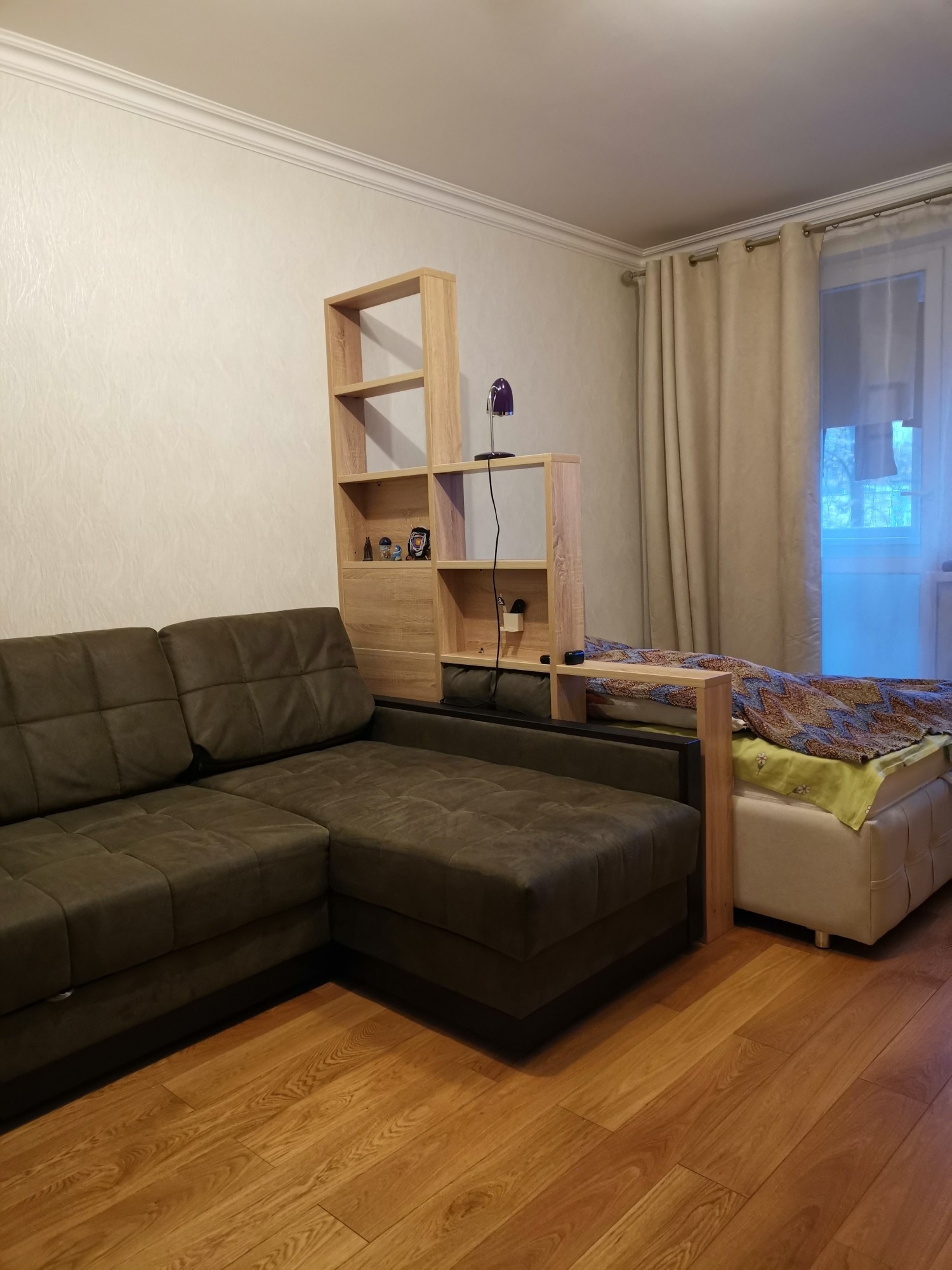 Продаётся 1-комнатная квартира со свежим ремонтом. В ремонте использовались качественные материалы: пол - паркетная доска, плитка, окна - ПВХ, в кухне и в ванной комнате - натяжные потолки, в комнате и в прихожей потолок выравнен и покрашен.
