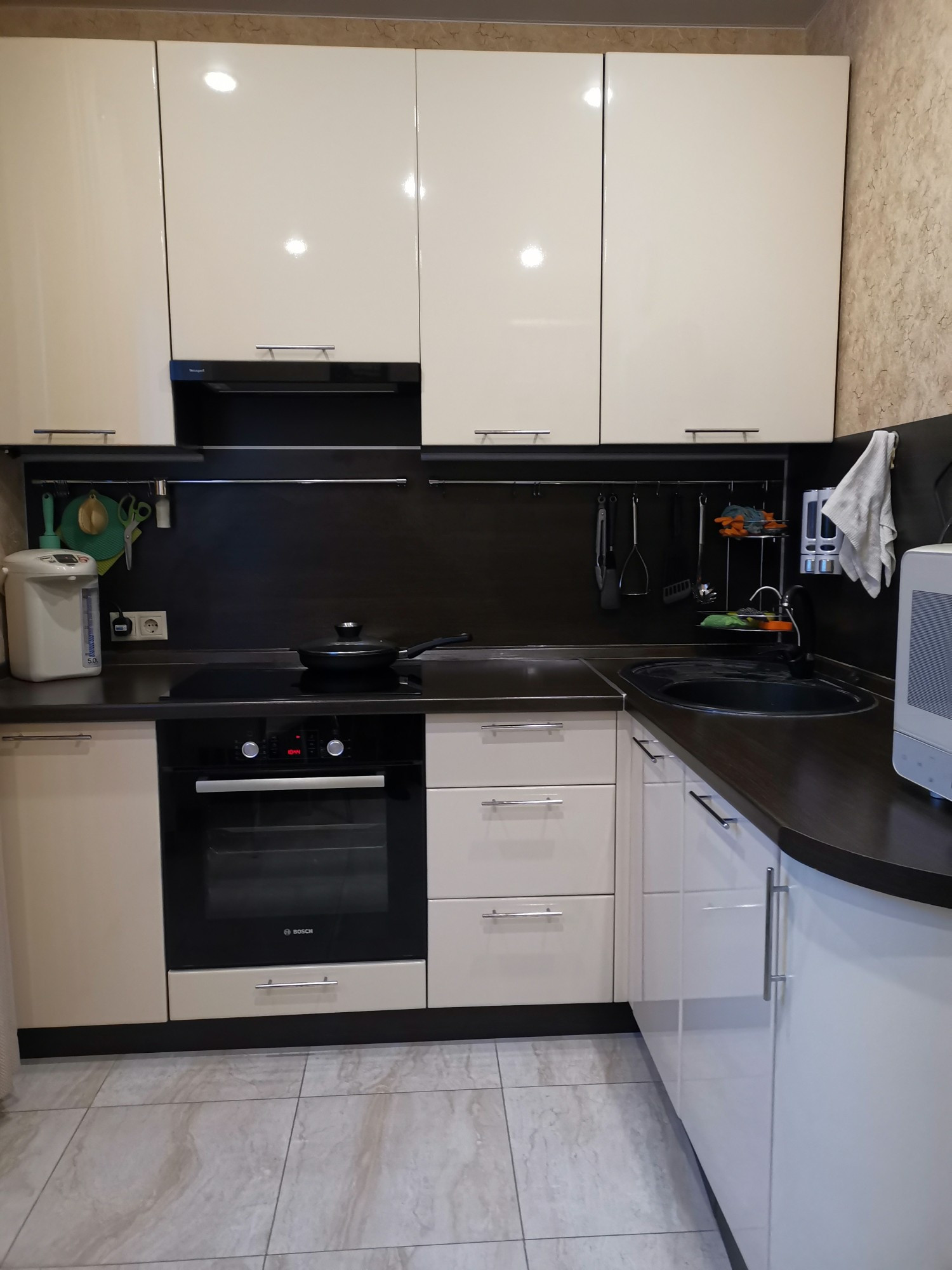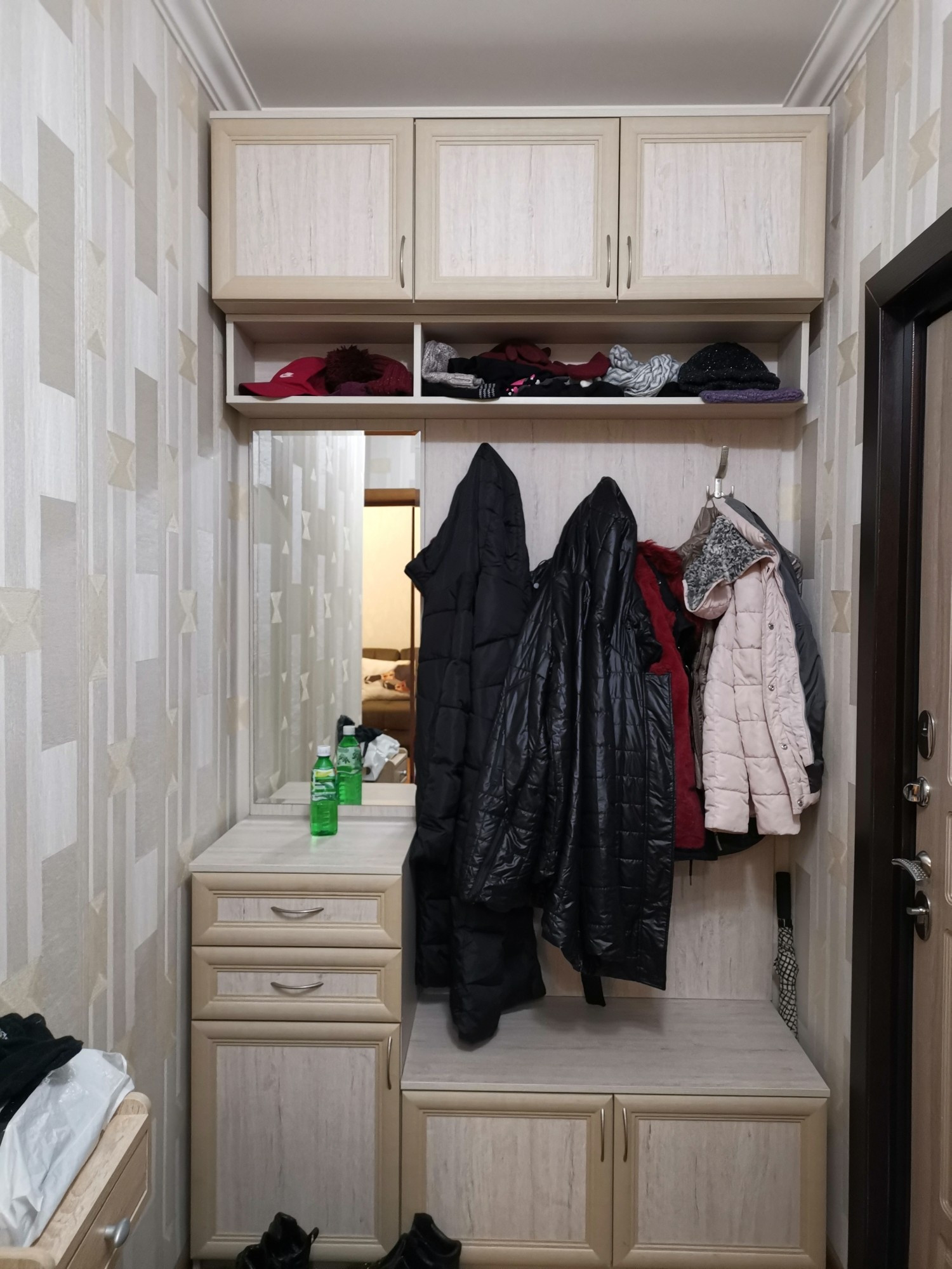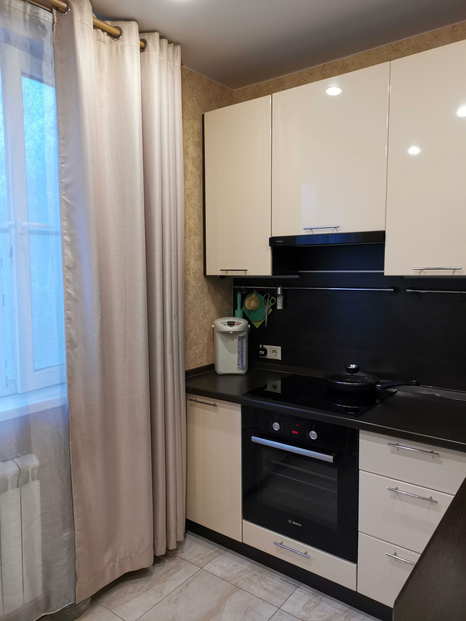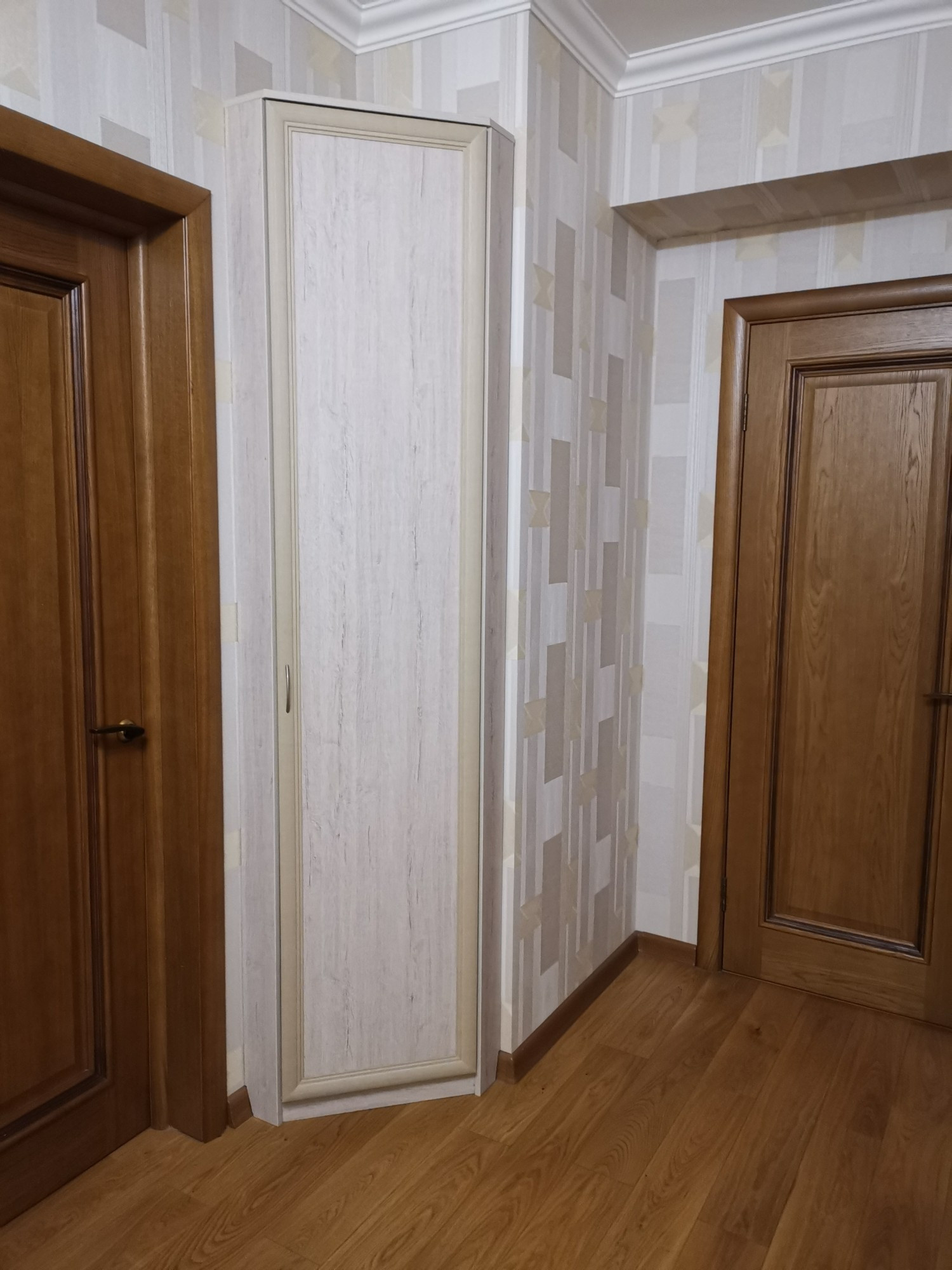 Просторная кухня, с встроенной мебелью и техникой, большая прихожая с местами для хранения одежды, комната с встроенным шкафом.