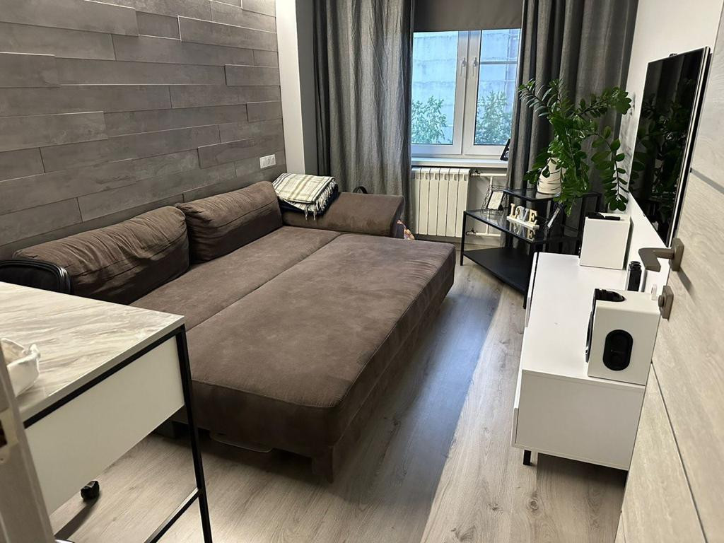-гостиная 10кв : раскладной диван, тумба под телевизор и журнальные столы;