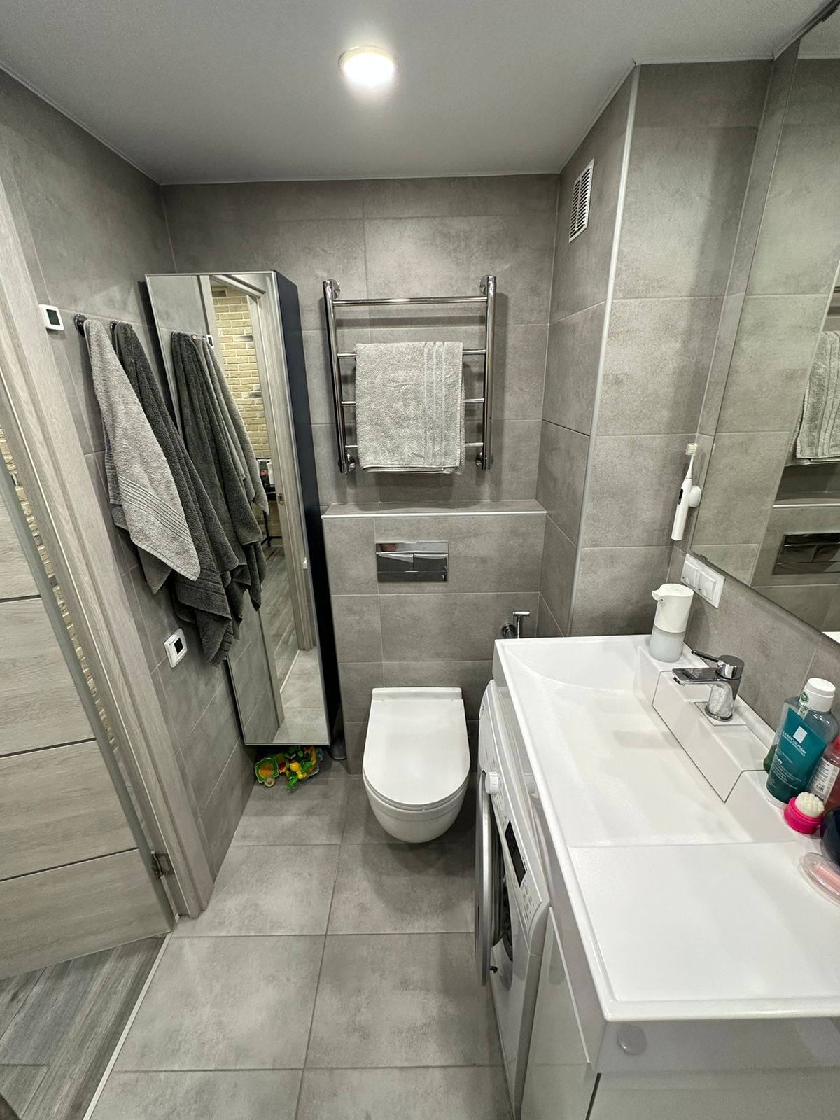 -с/у 4кв (совмещенный) : ванна и туалет с гигееническим душем, подвесной шкаф и стиральная машина; -кухня 6кв: газовая/электрическая варочная панель, посудомоечная машина, холодильник (имеется короб для встраиваемого холодильника);