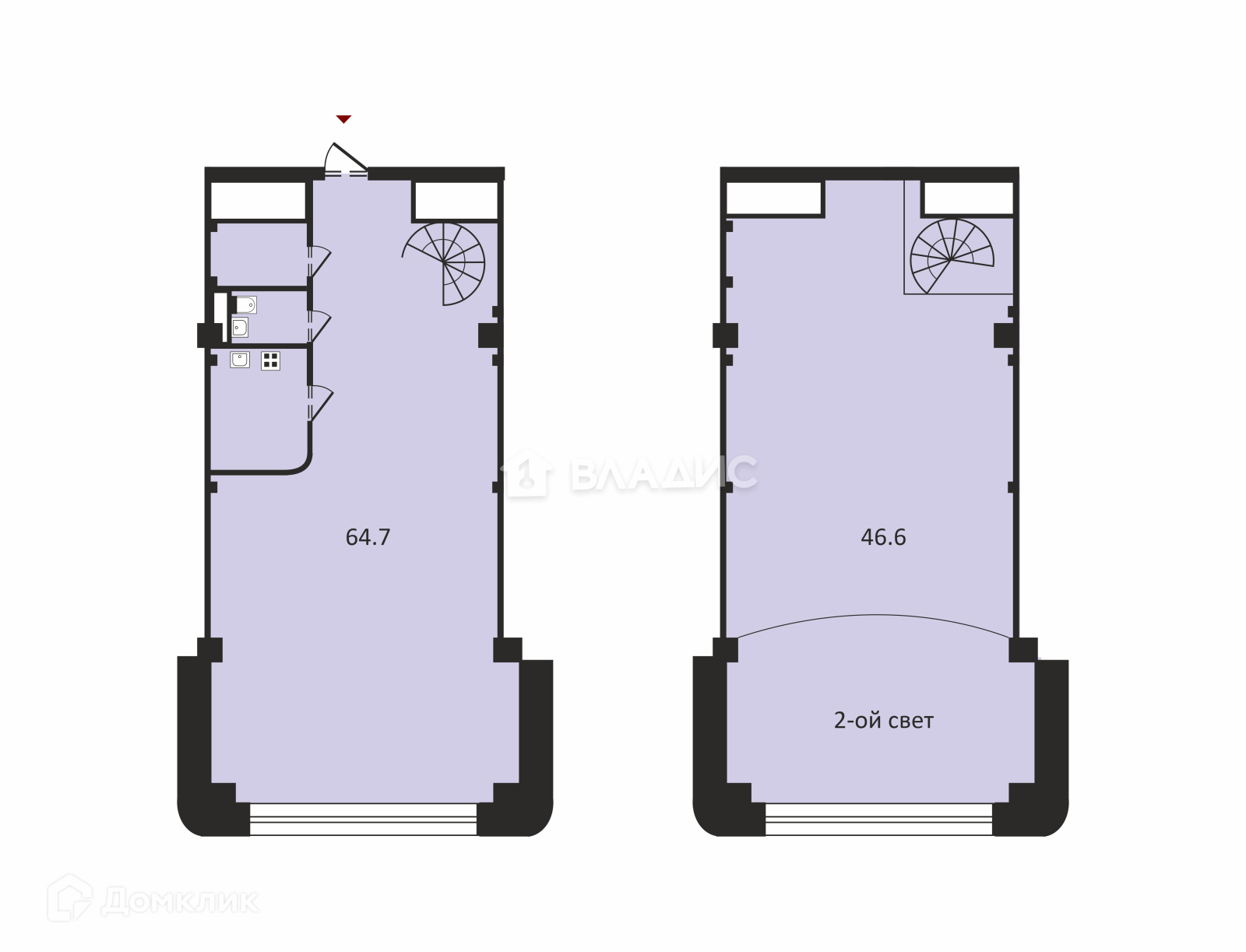 Двухуровневый, двухсветный Лофт со свободной планировкой. Полная свобода для воплощения Вашего дизайнерского решения.