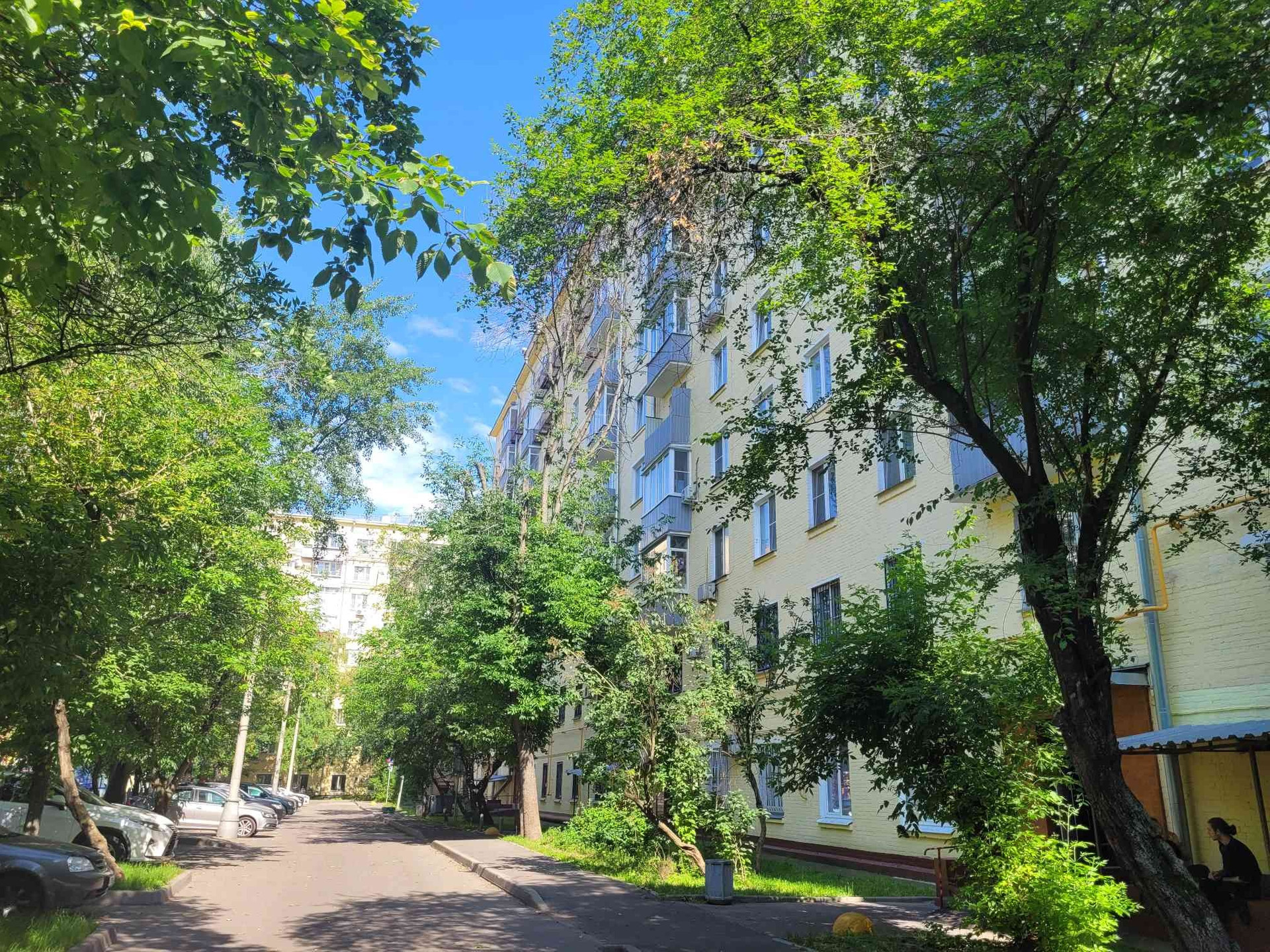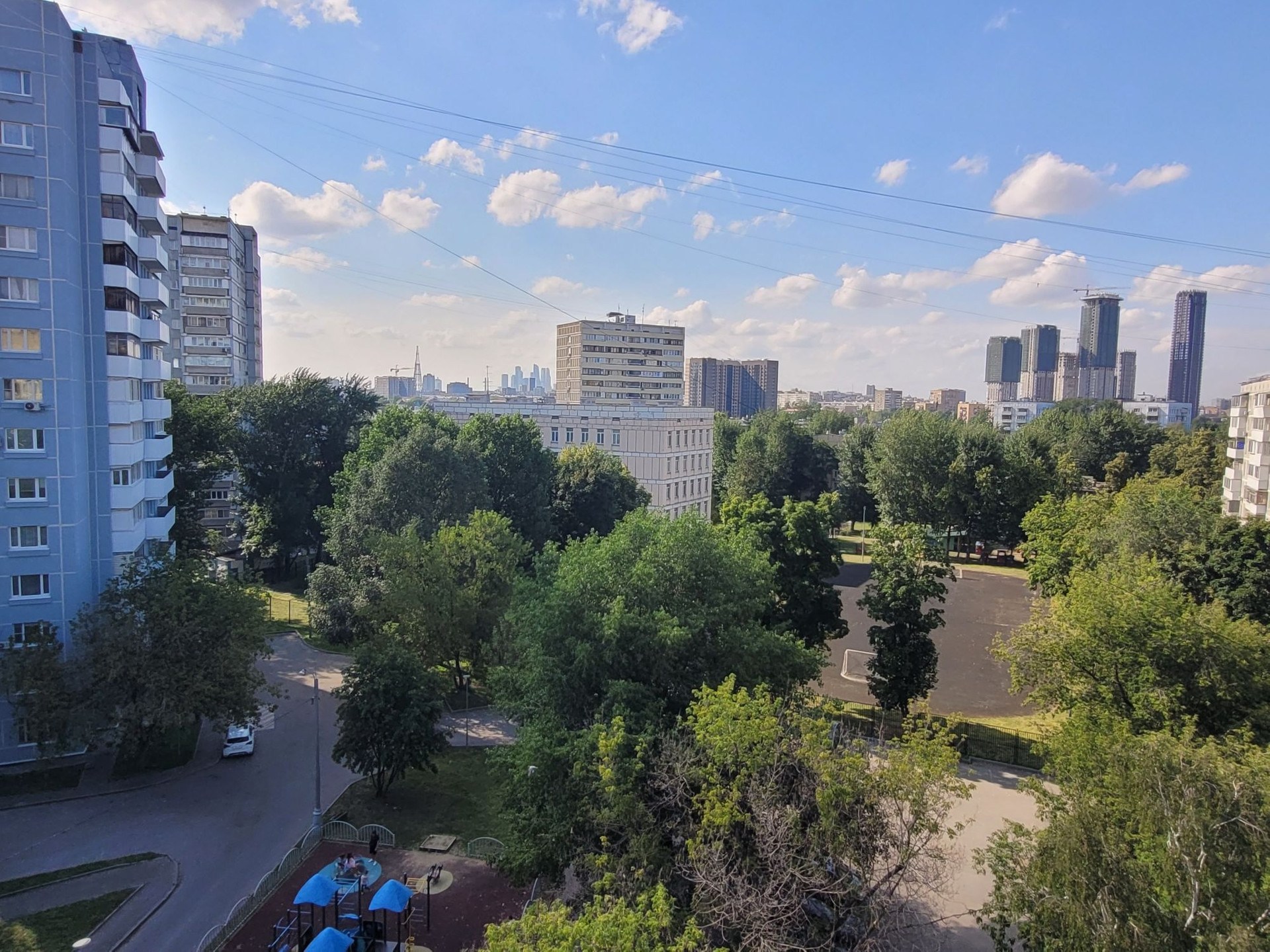 Окна выходят в утопающий в зелени двор с детской и спортивной площадкой.  Дом расположен на набережной Москвы реки с  прекрасными видами.